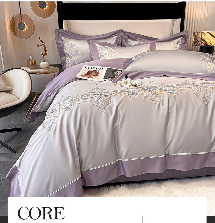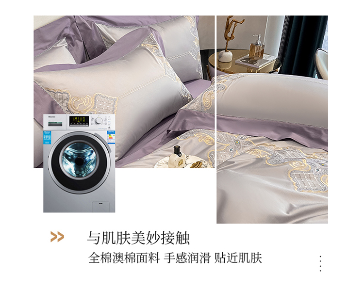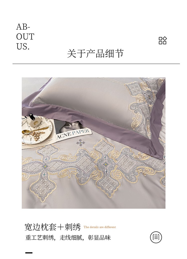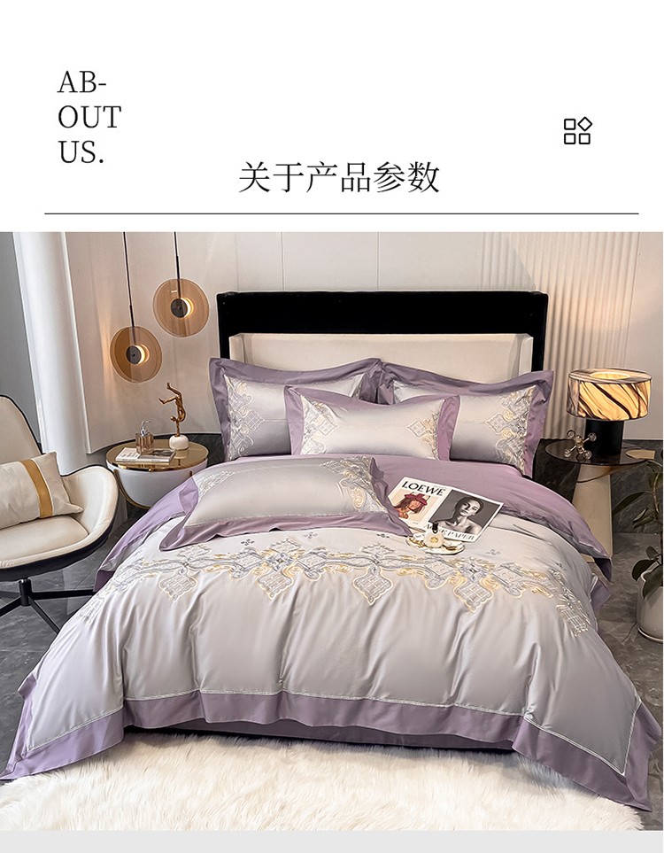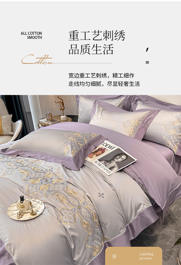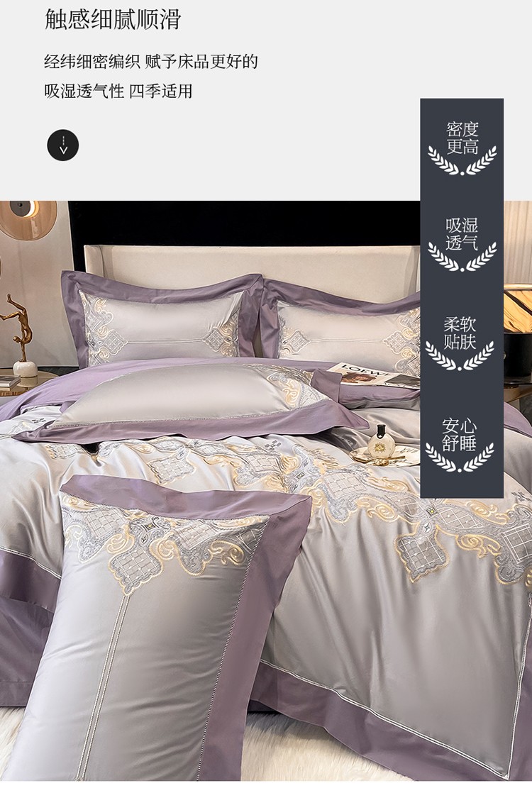 (总)品家居 2025新款180支长绒棉绣花四件套露珠,露珠-香槟色,露珠-紫灰