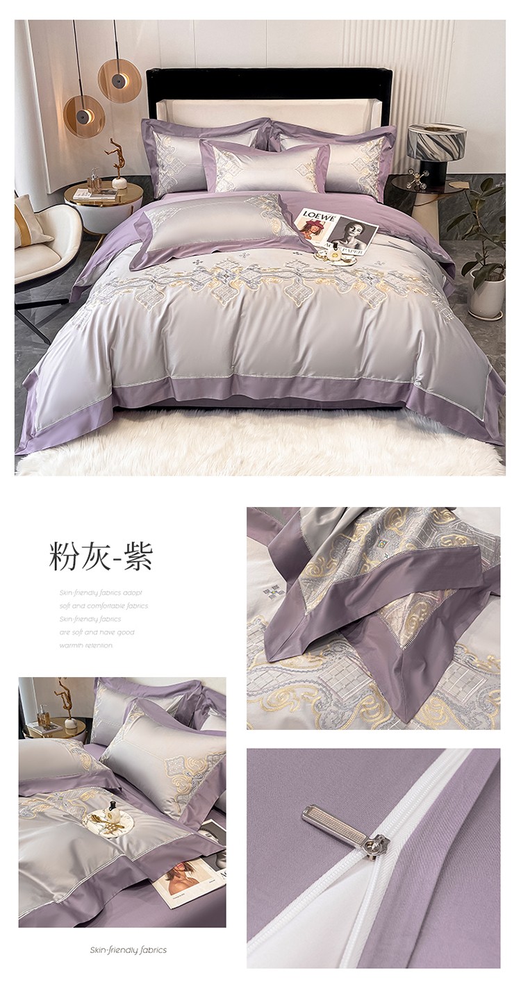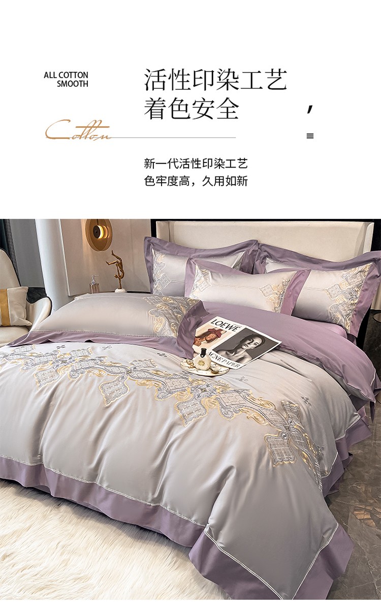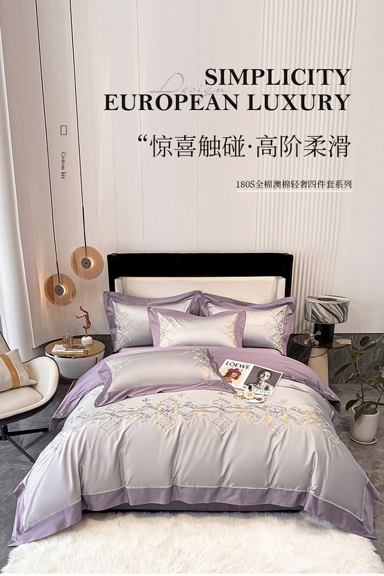 品家居 2021新款180S全棉澳棉刺绣四件套 伊莲-粉灰紫