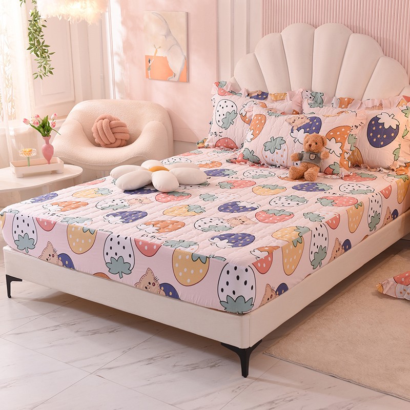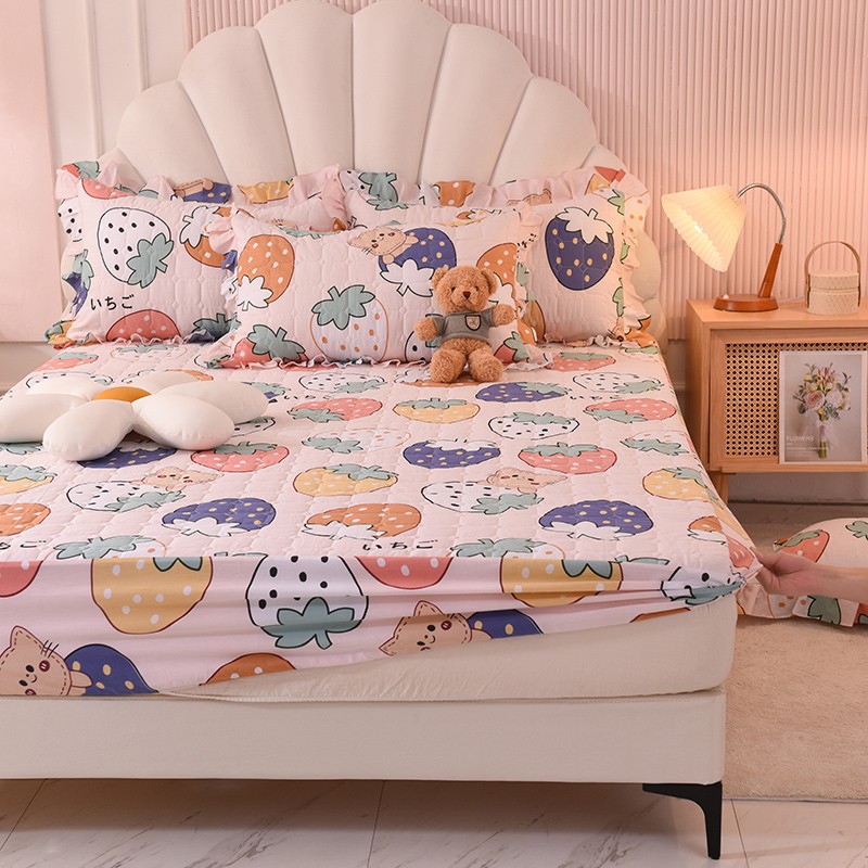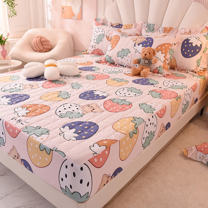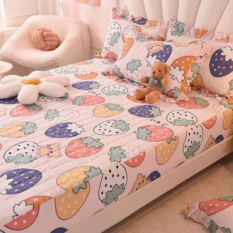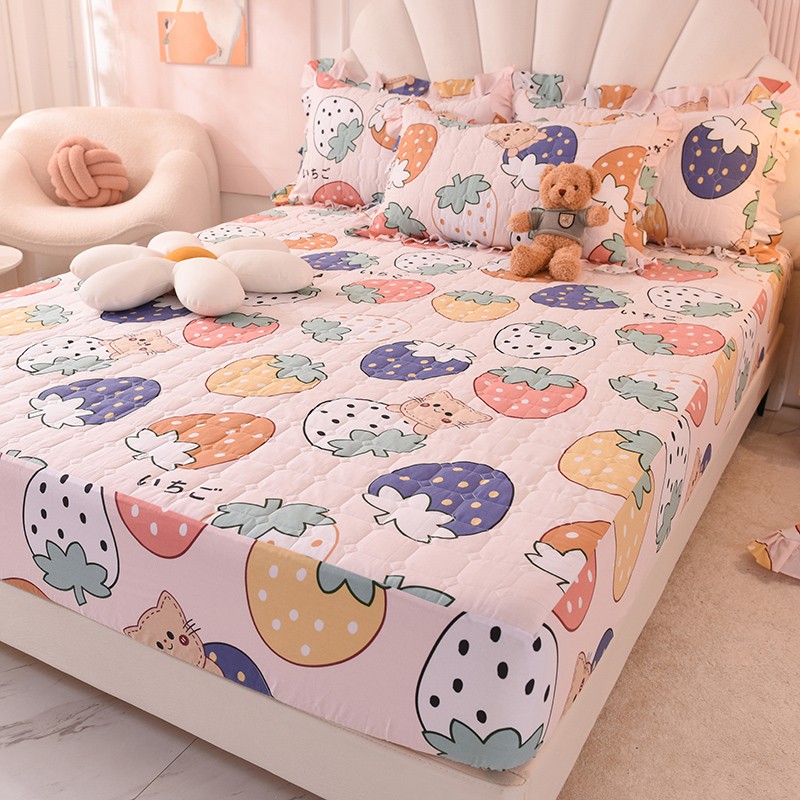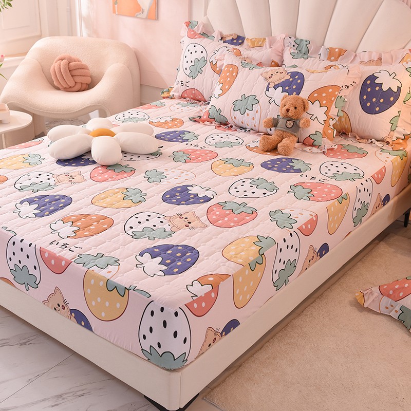 甜之梦家纺 2025新款全棉夹棉防滑抗菌床笠 草莓乐园