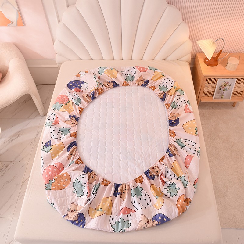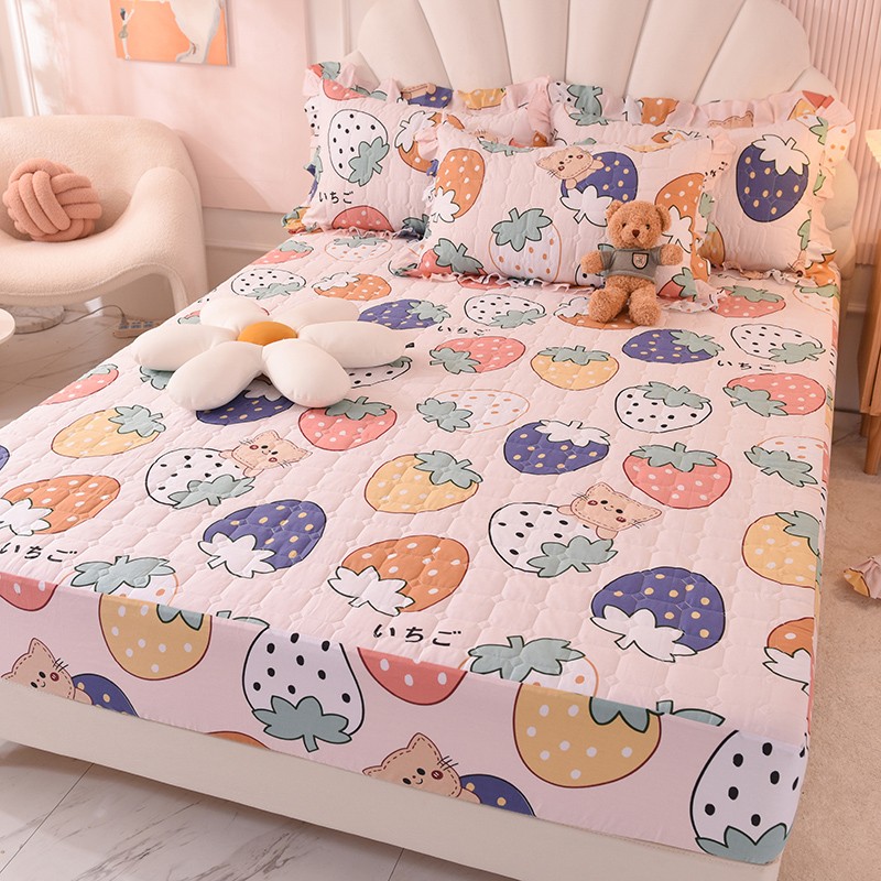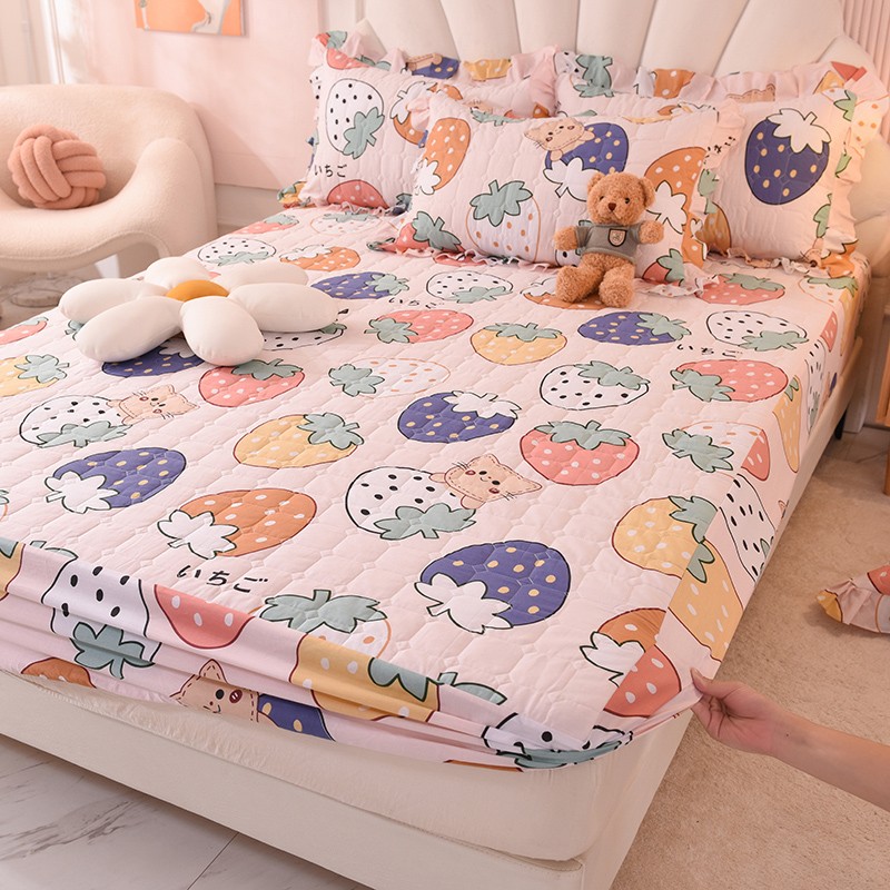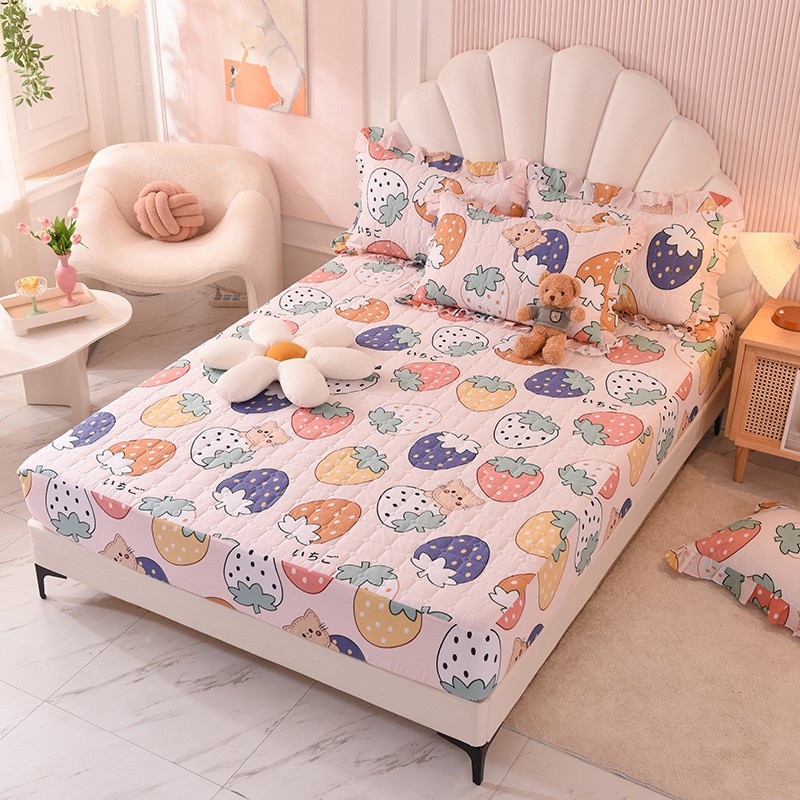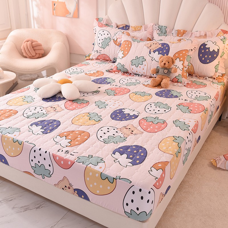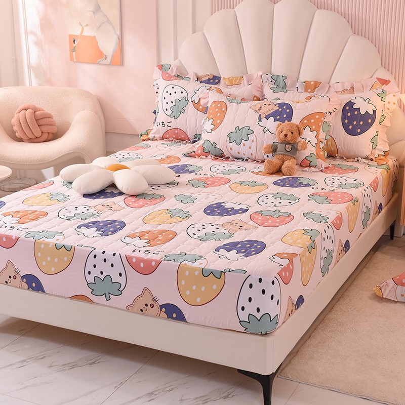 甜之梦家纺 2025新款全棉夹棉防滑抗菌床笠 草莓乐园