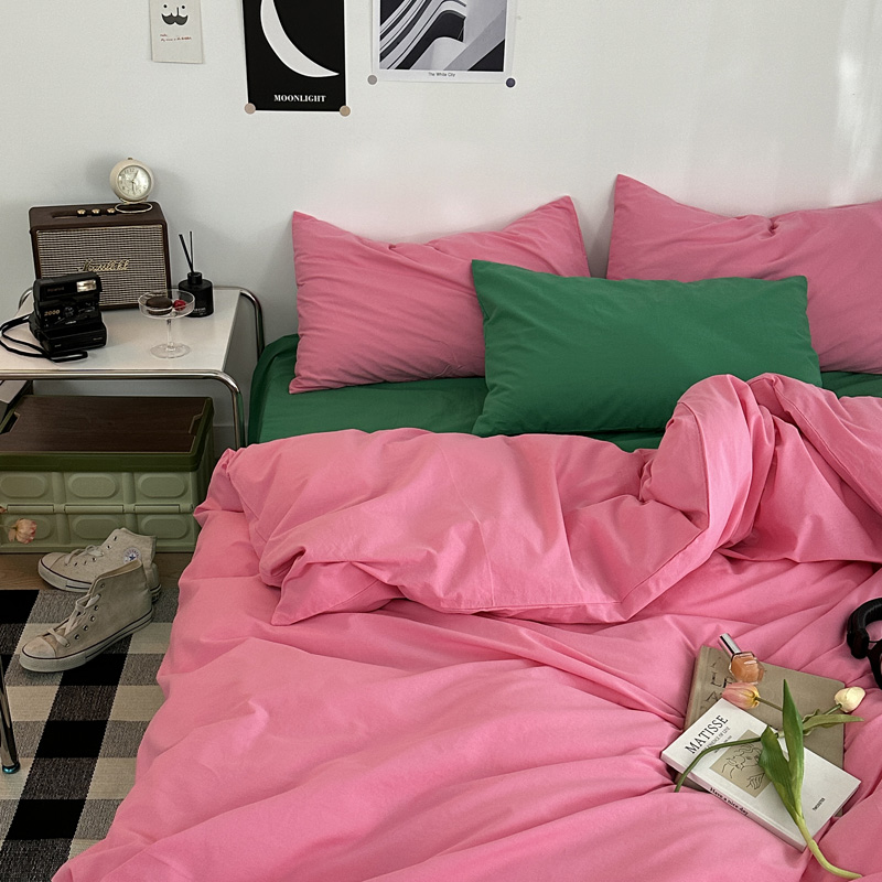(总)艾沁2025新款全棉色织水洗棉西瓜色撞色四件套,西瓜派对(枕套红格+黄色),西瓜派对(枕套红格+绿色),西瓜派对(枕套绿色+黄色),西瓜派对(枕套樱桃一对)