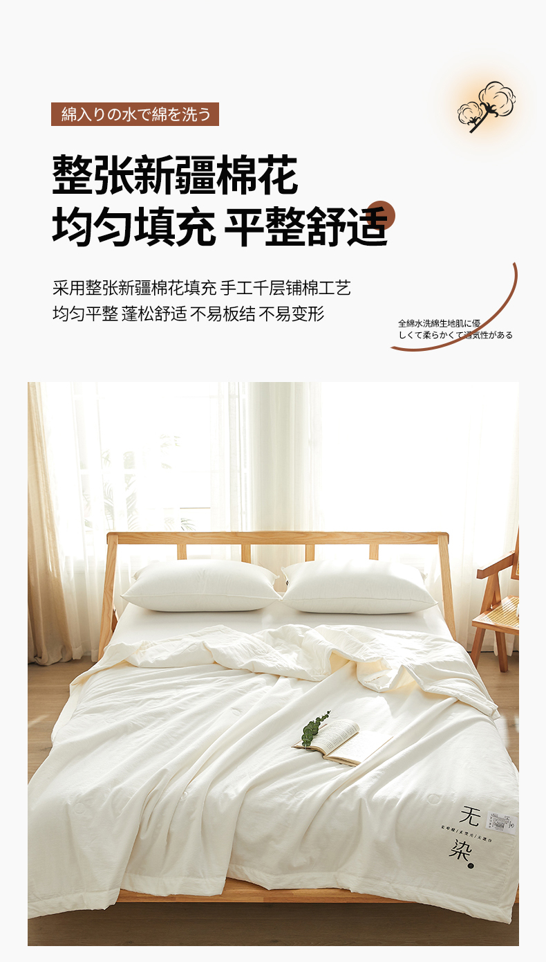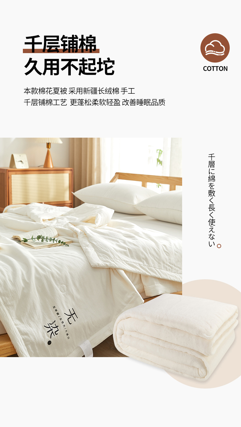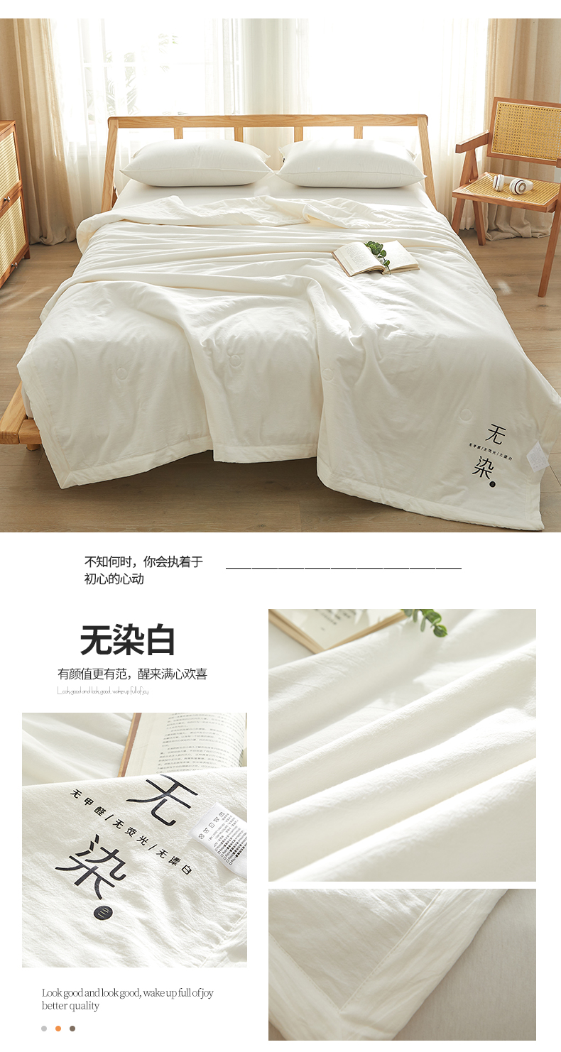 (总)格子铺-2024年新款无印风不染原棉全棉水洗棉烫画夏被,朴棉白,无染白,原棉白