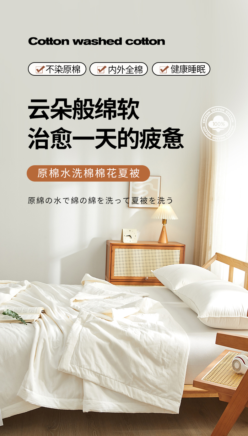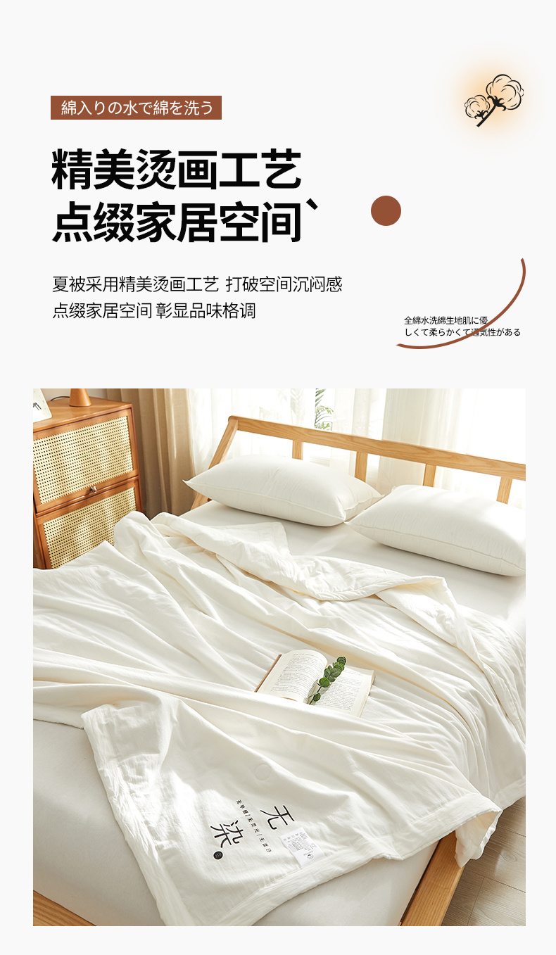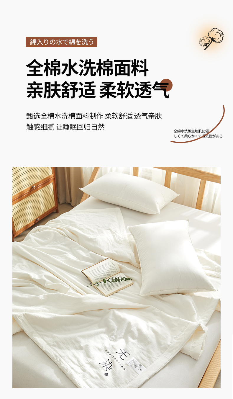 (总)格子铺-2024年新款无印风不染原棉全棉水洗棉烫画夏被,朴棉白,无染白,原棉白