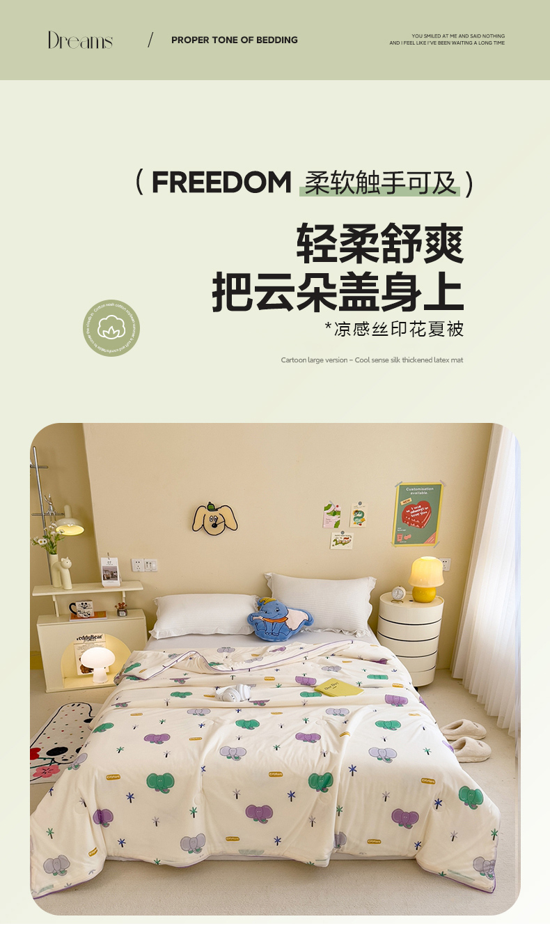 商品名称:米菲 2024新款A类凉感丝印花夏被夏凉被被芯 小象飞飞