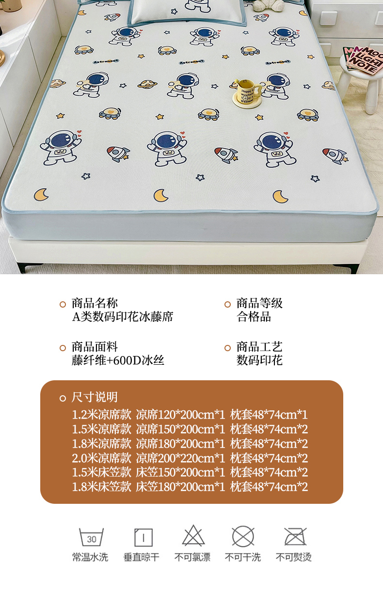 当前位置: 91家纺网 > 商品网购 > 床上用品 > 凉席 > 藤席 > 全季家居 2024新款5A抗菌小清新数码印花冰藤席 星空世界(床笠款)