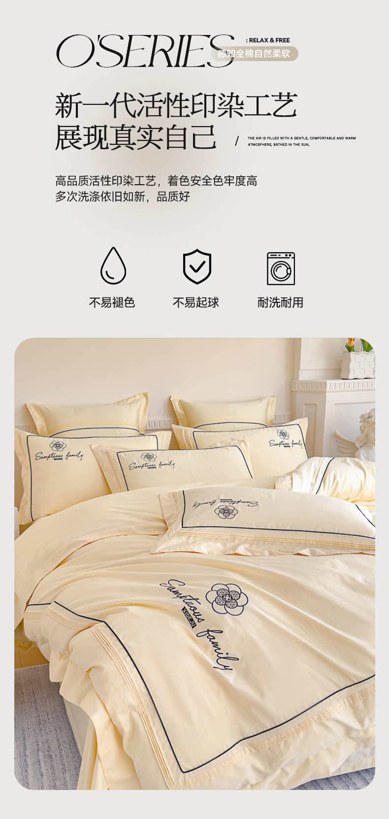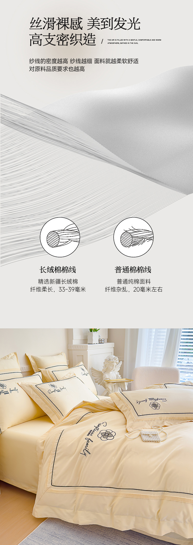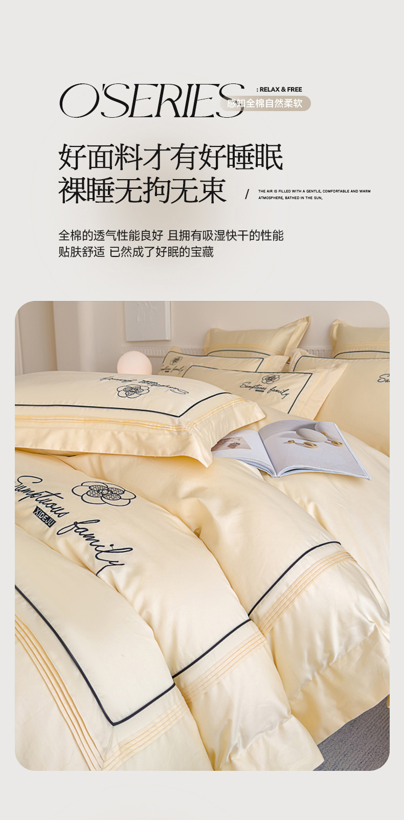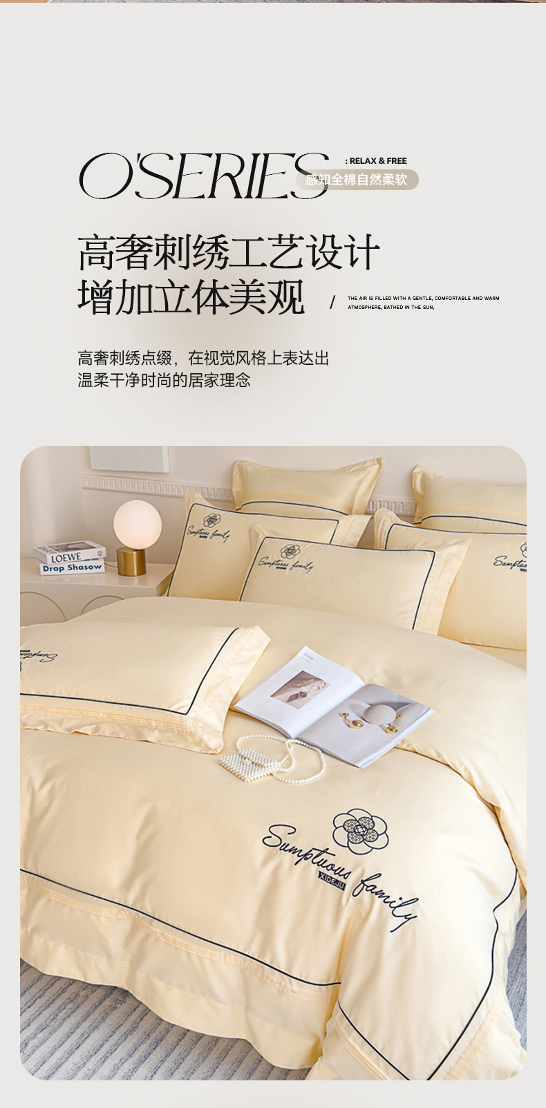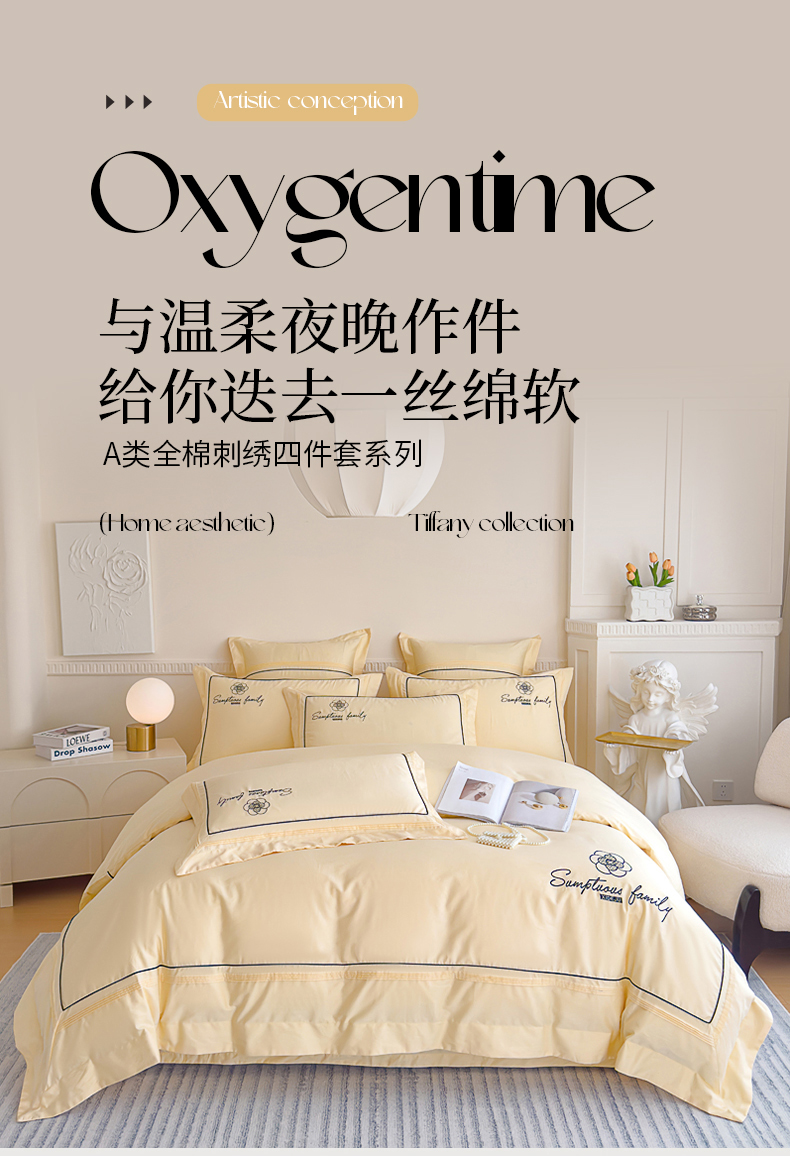商品名称:品家居 2025新款100支长绒棉刺绣四件套-香梵希(控价368) 香梵希-翡翠黄