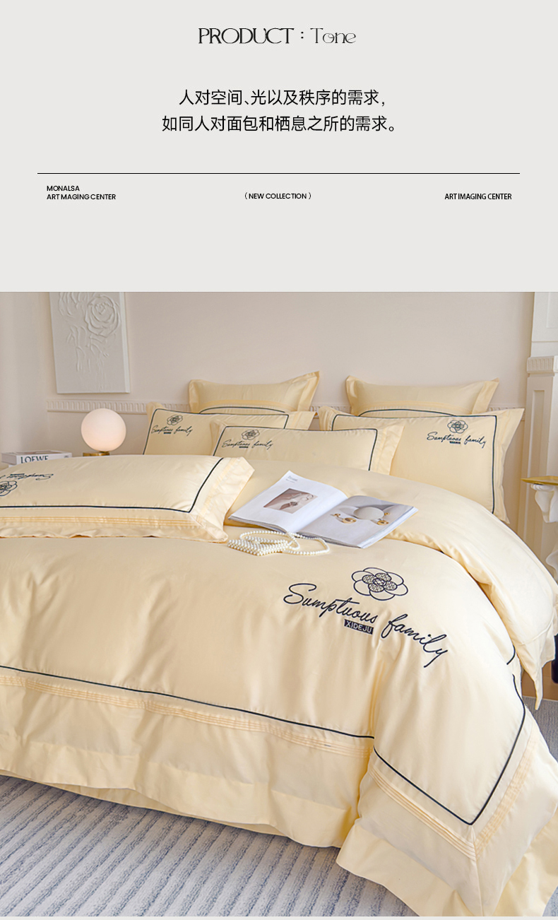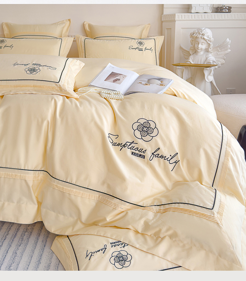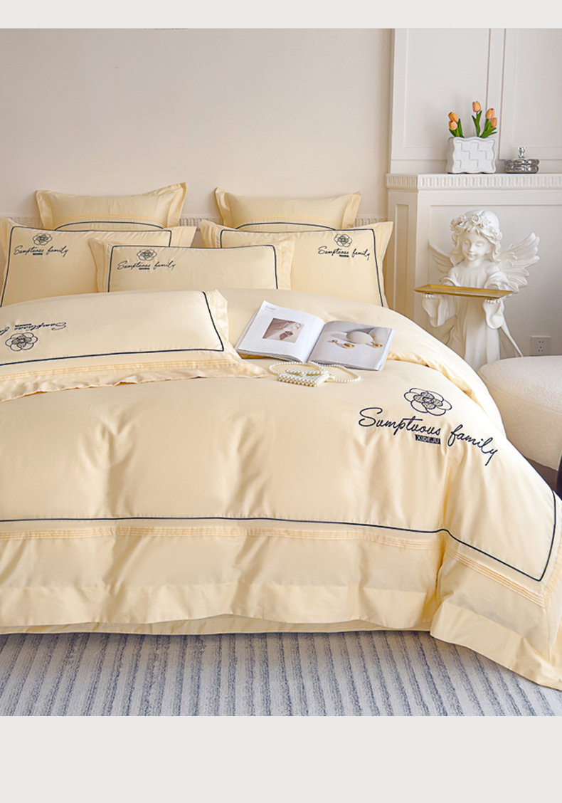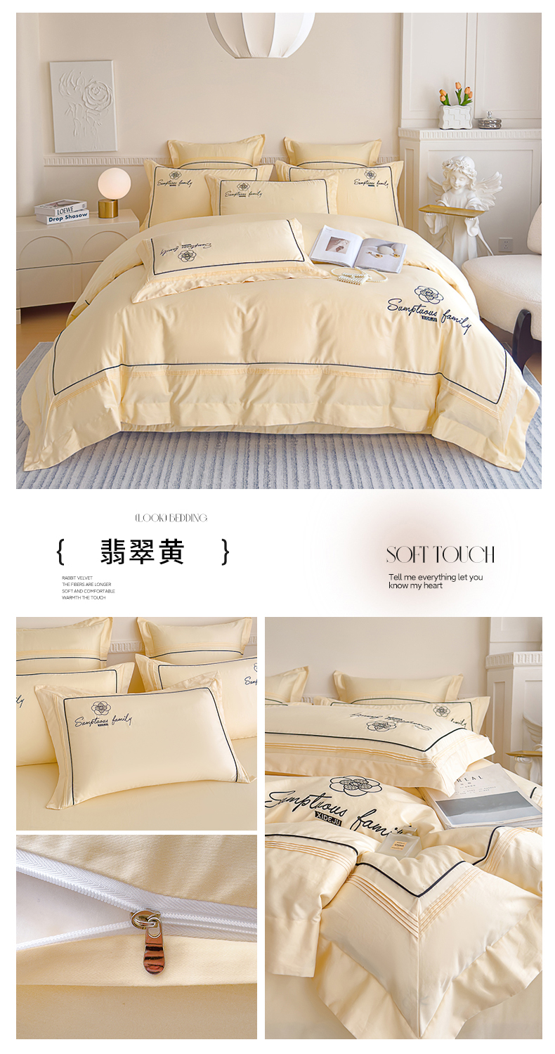 品家居 2025新款100支长绒棉刺绣四件套-香梵希(控价368) 香梵希-翡翠黄