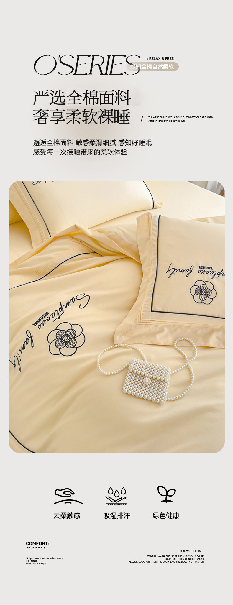 (总)品家居 2025新款180支长绒棉四件套可可系列,可可-粉,可可-蓝,可可-紫