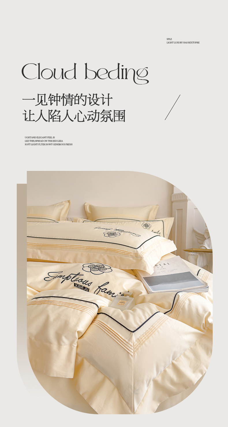 (总)品家居 2025新款180支长绒棉绣花四件套露珠,露珠-香槟色,露珠-紫灰
