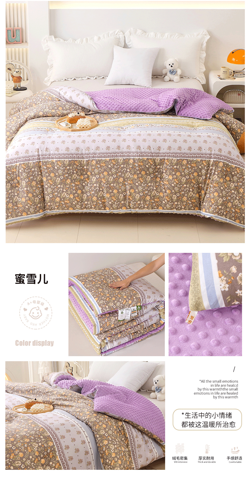 • 91家纺网 家纺一手货源 找家纺 爱宝被业 2025新款水洗棉双层纱豆豆绒被 蜜雪儿