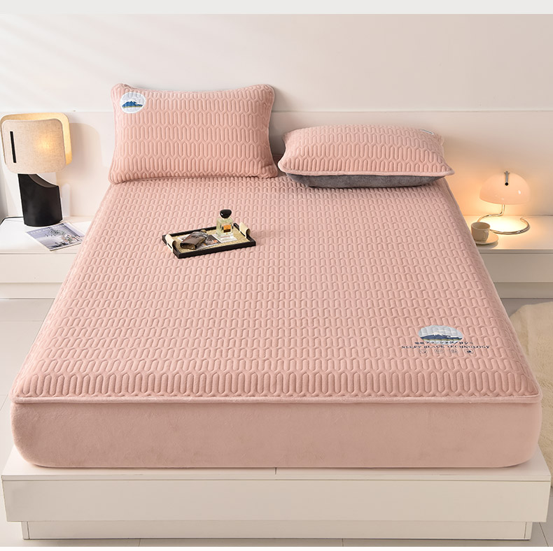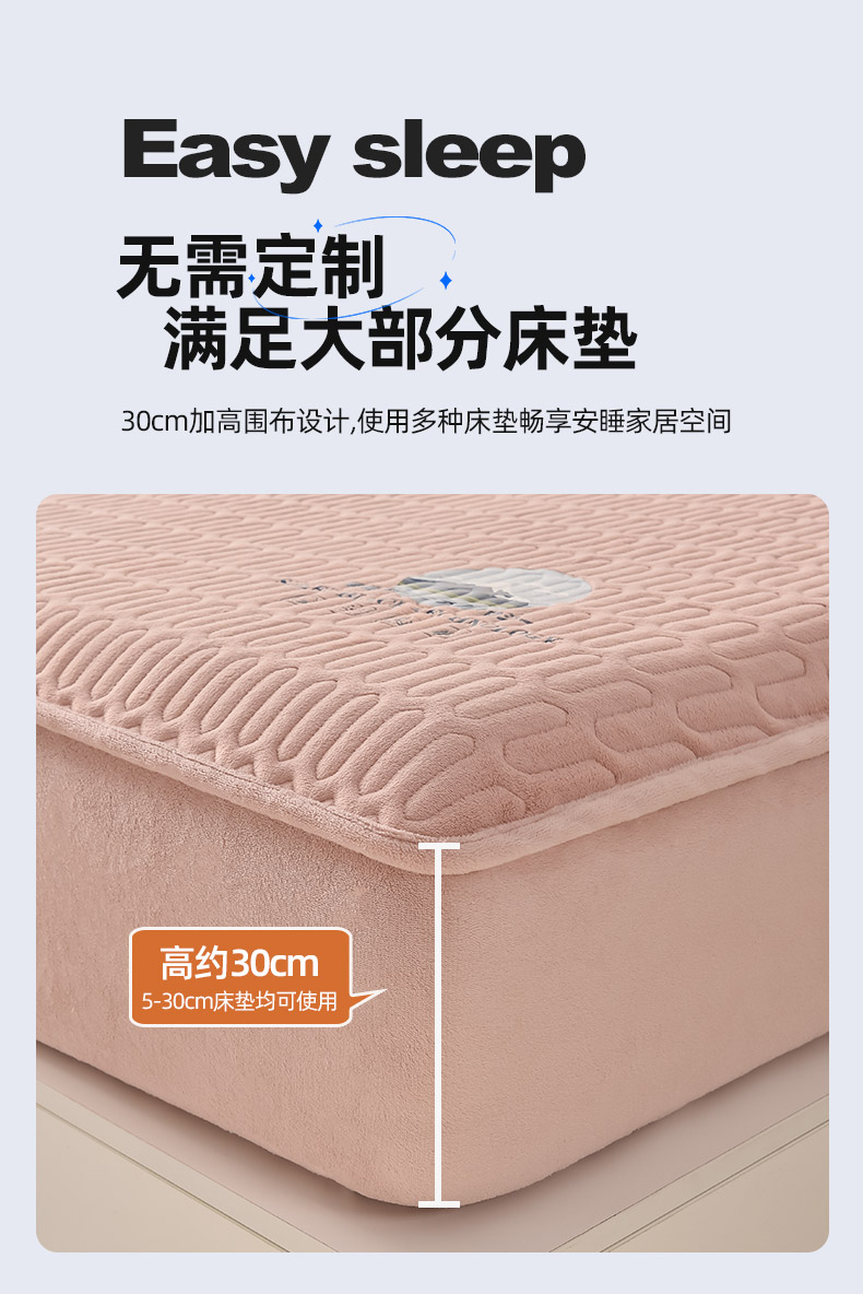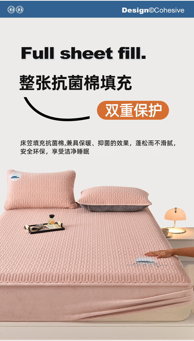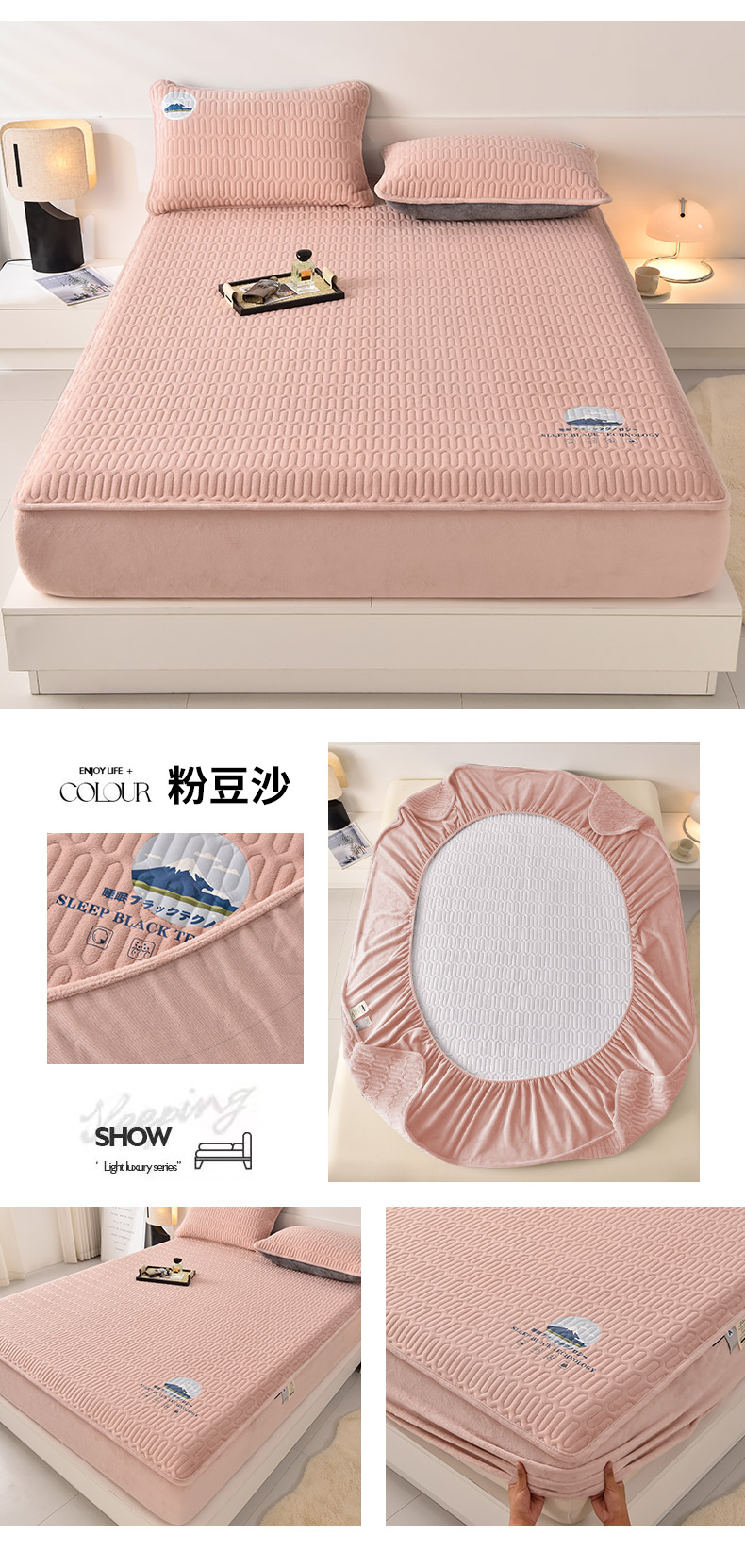 好眠好梦 2024新款富士山牛奶绒夹棉床笠 粉豆沙