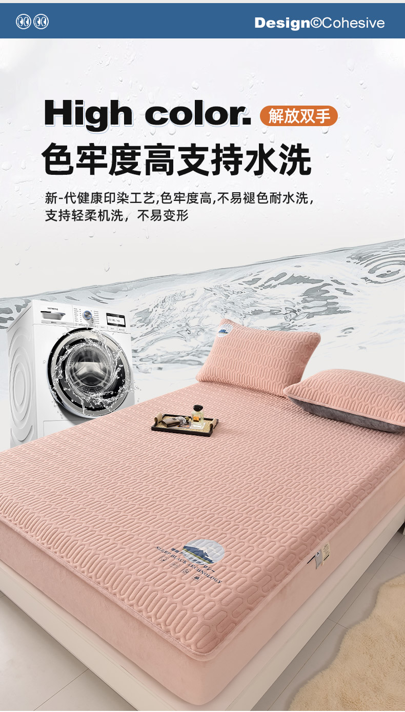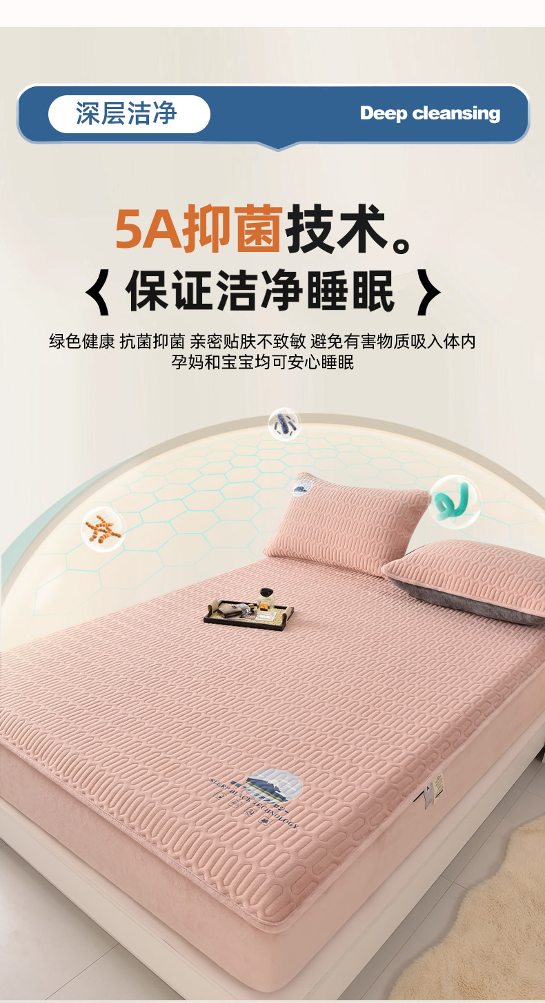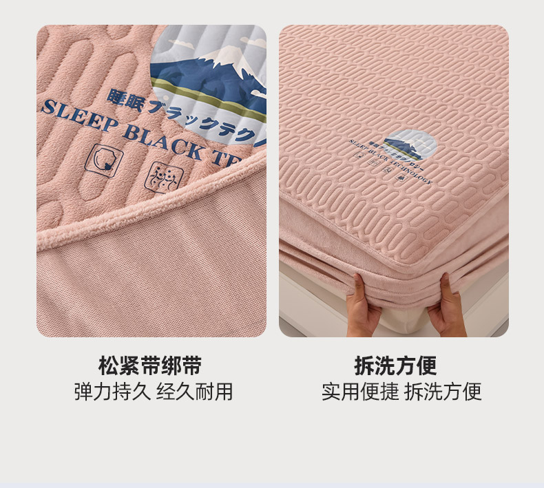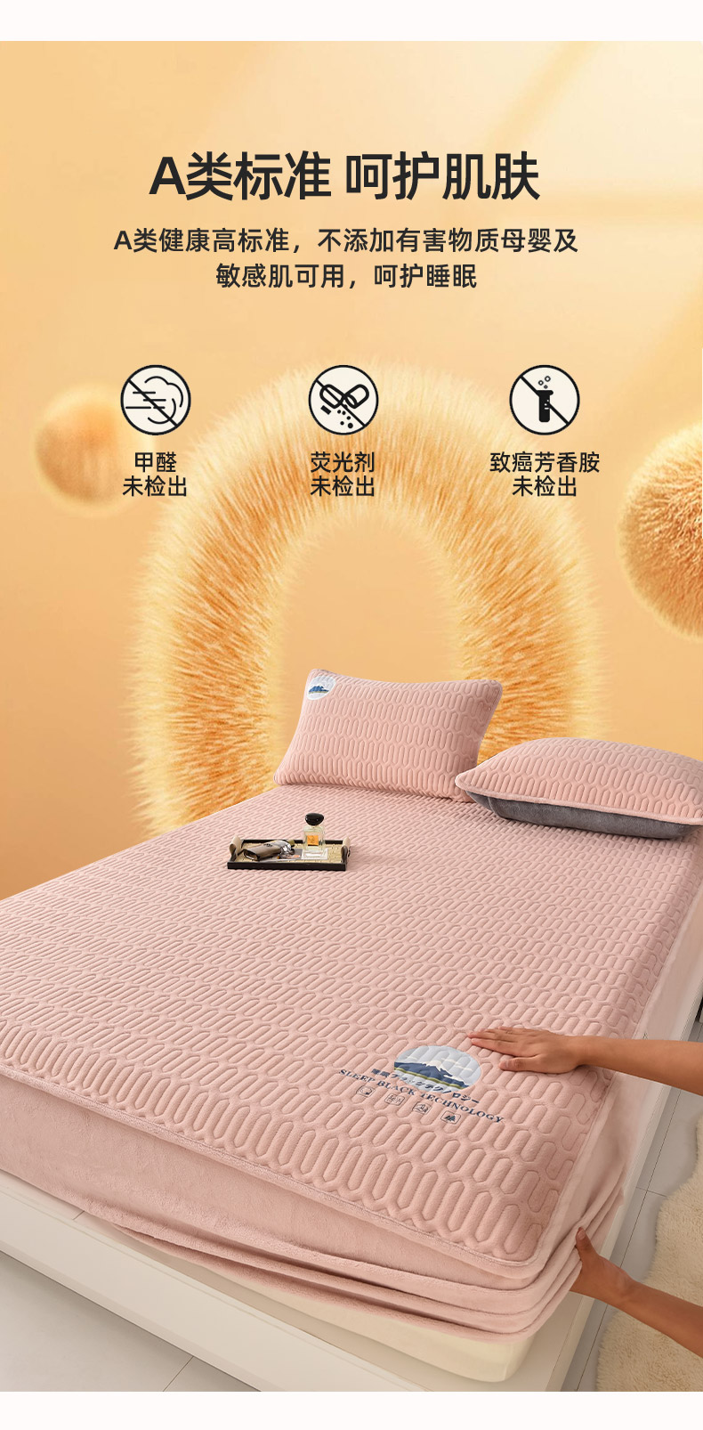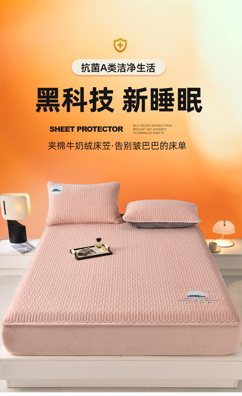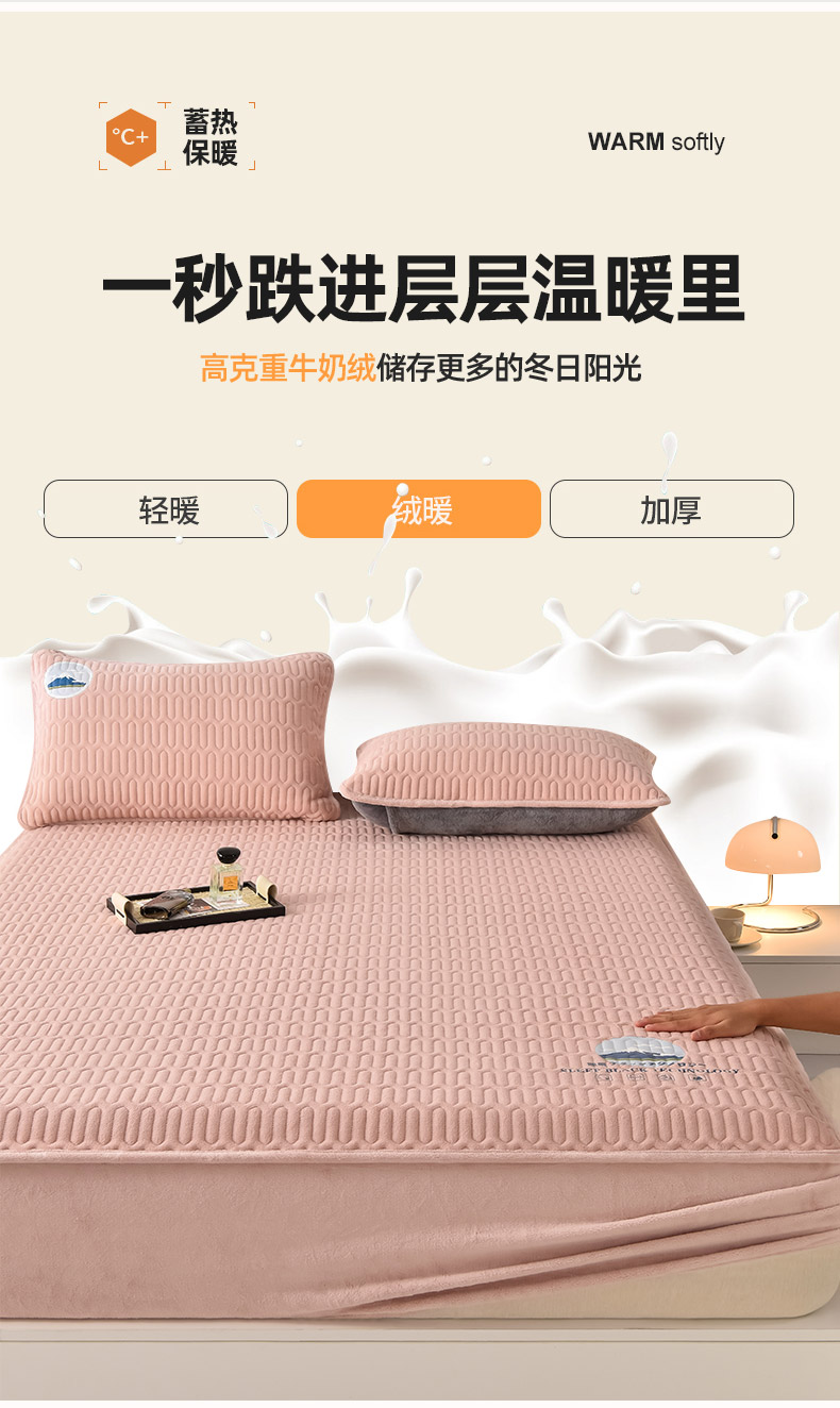 • 91家纺网 家纺一手货源 找家纺 好眠好梦 2024新款富士山牛奶绒夹棉床笠 粉豆沙