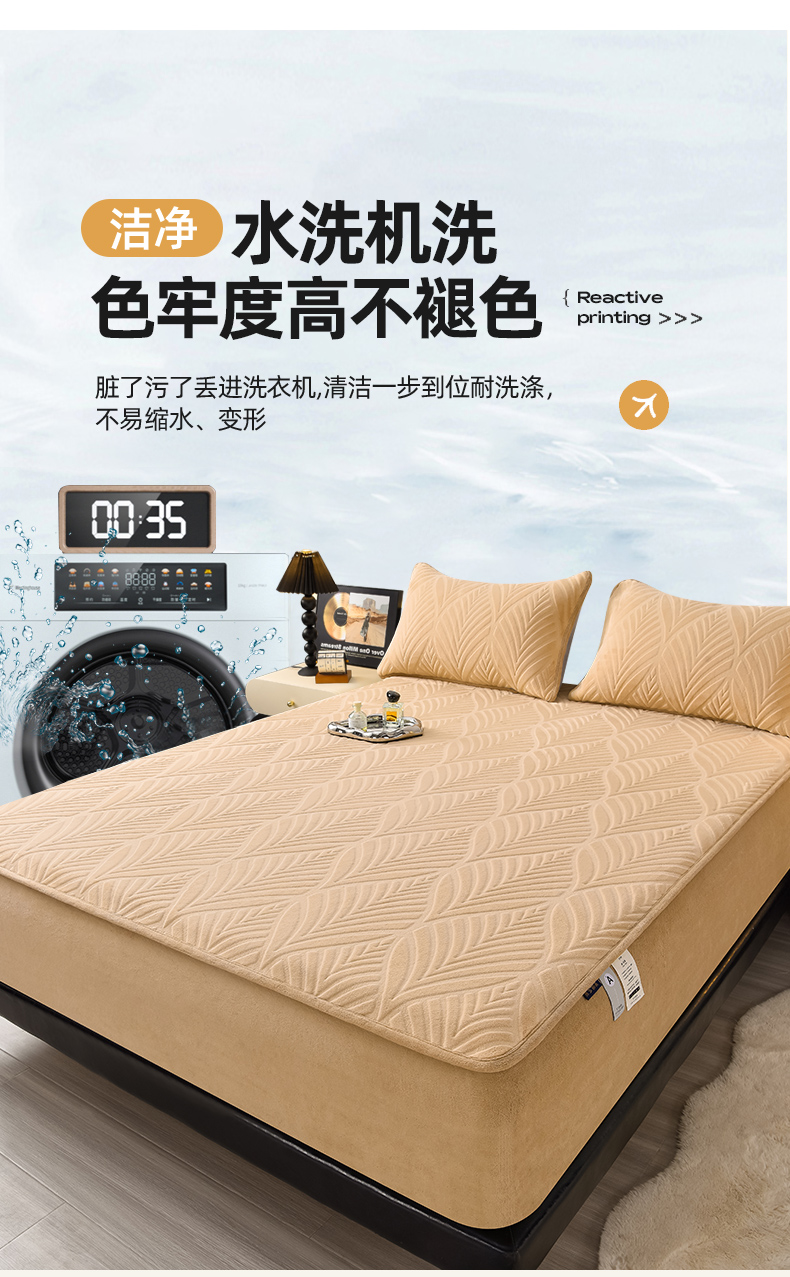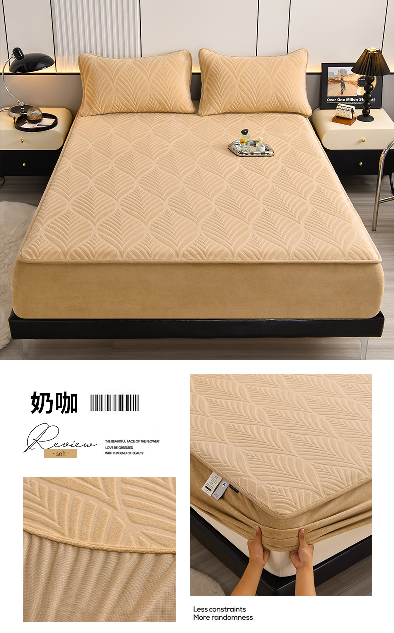 • 91家纺网 家纺一手货源 找家纺 好眠好梦 相思叶牛奶绒复合三明治床笠 奶咖
