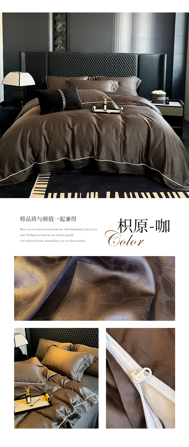 商品名称:娇逸2025新款60s兰精天丝提花四件套 枳原-咖