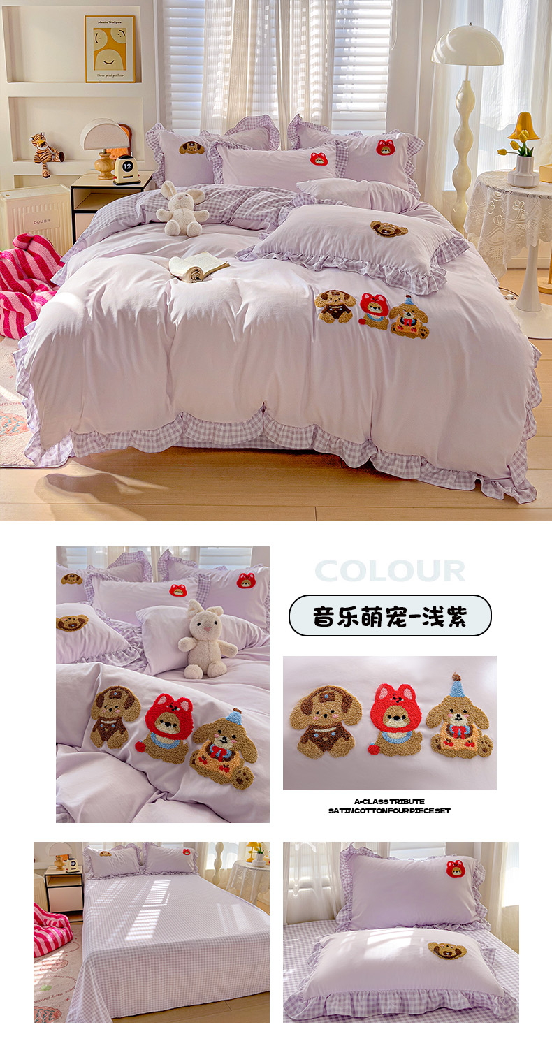 商品名称:(总)2025新款高克重立体臻棉法式韩版毛巾绣四件套-音乐萌宠