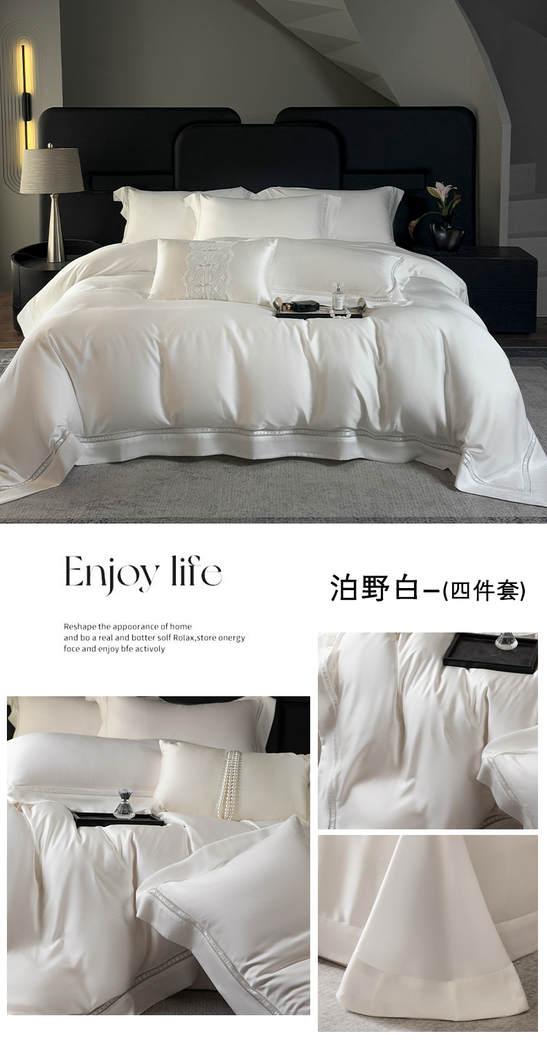 商品名称:娇逸家居 2025新款高质量60s兰精素色天丝宽边镂空天丝四件套 泊野白