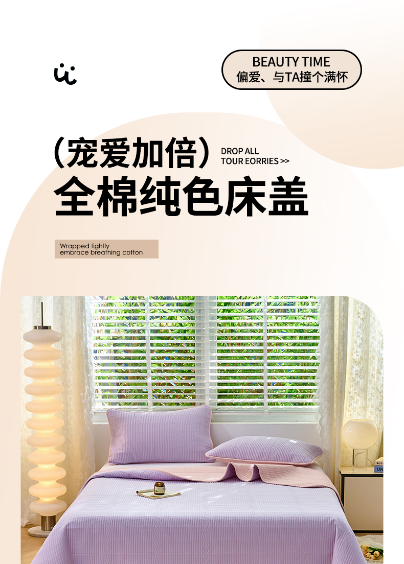 当前位置: 91家纺网 > 商品网购 > 床上用品 > 床盖 > X猫先生 2025新款全棉纯色床盖全棉床盖糖果系列 糖果-丁香紫