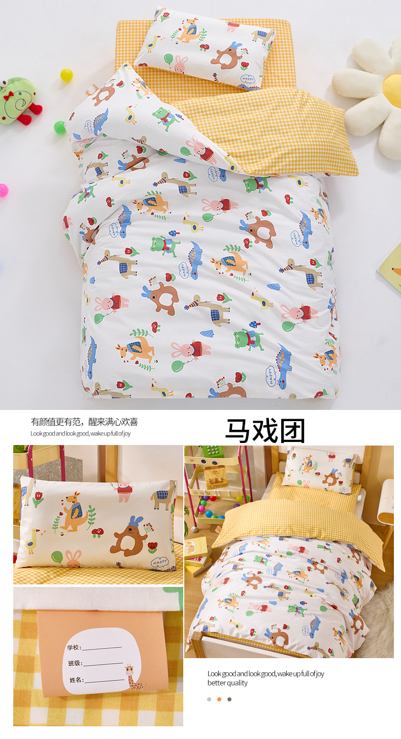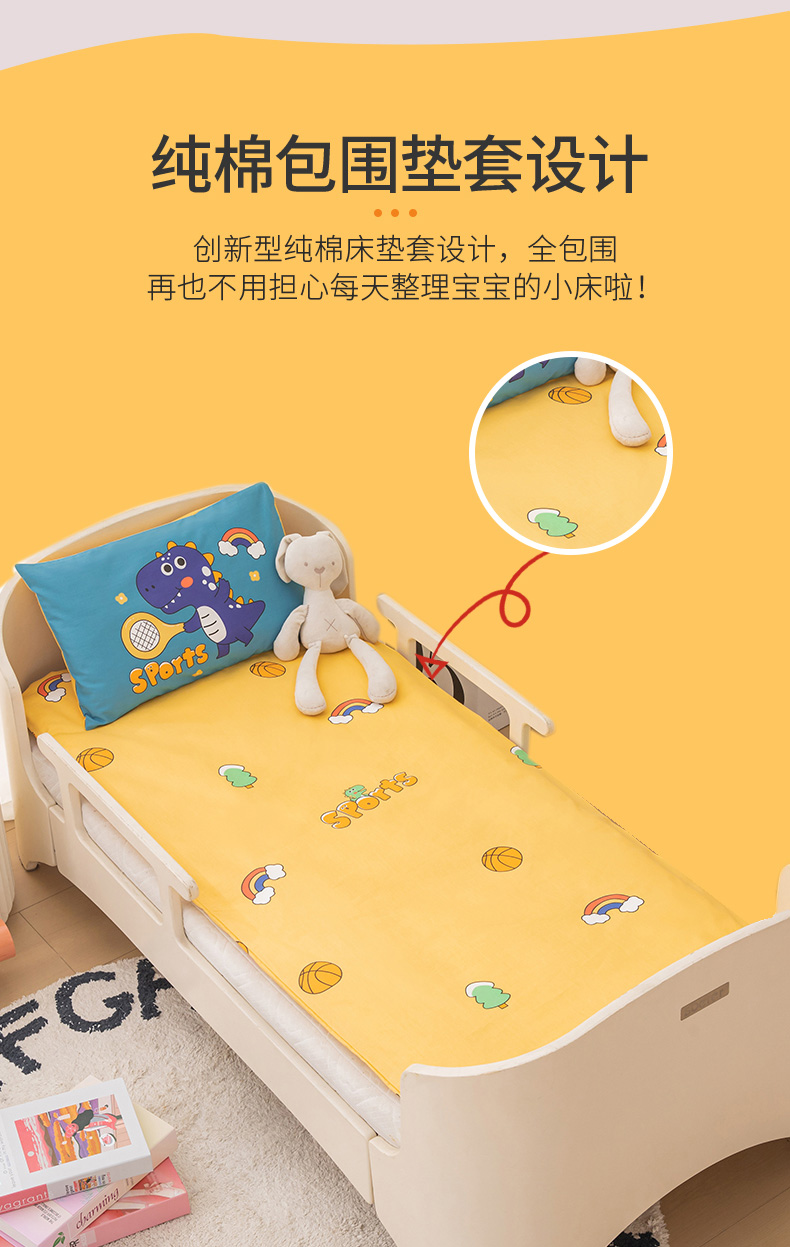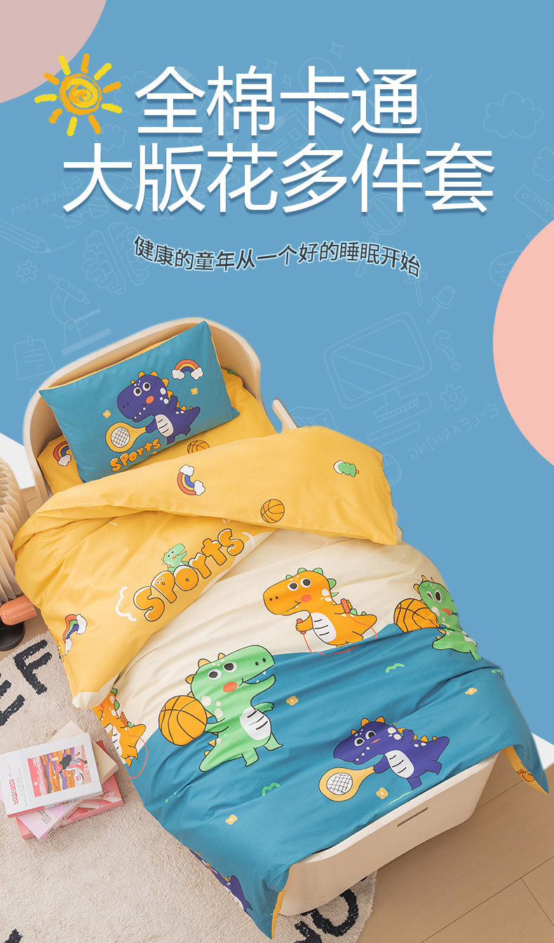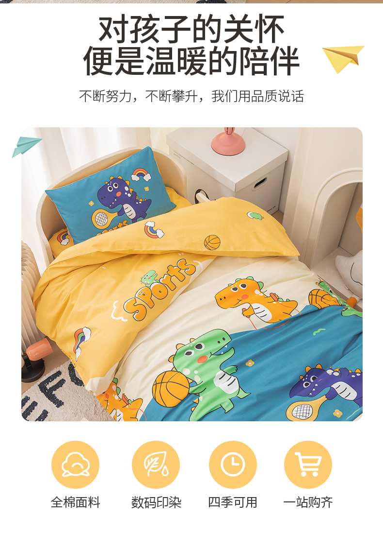 当前位置: 91家纺网 > 商品网购 > 床品套件 > 四件套 > 其它四件套 > 嗨皮宝贝 2025新款全棉纯棉13372幼儿园三件套多件套 爱运动的小恐龙