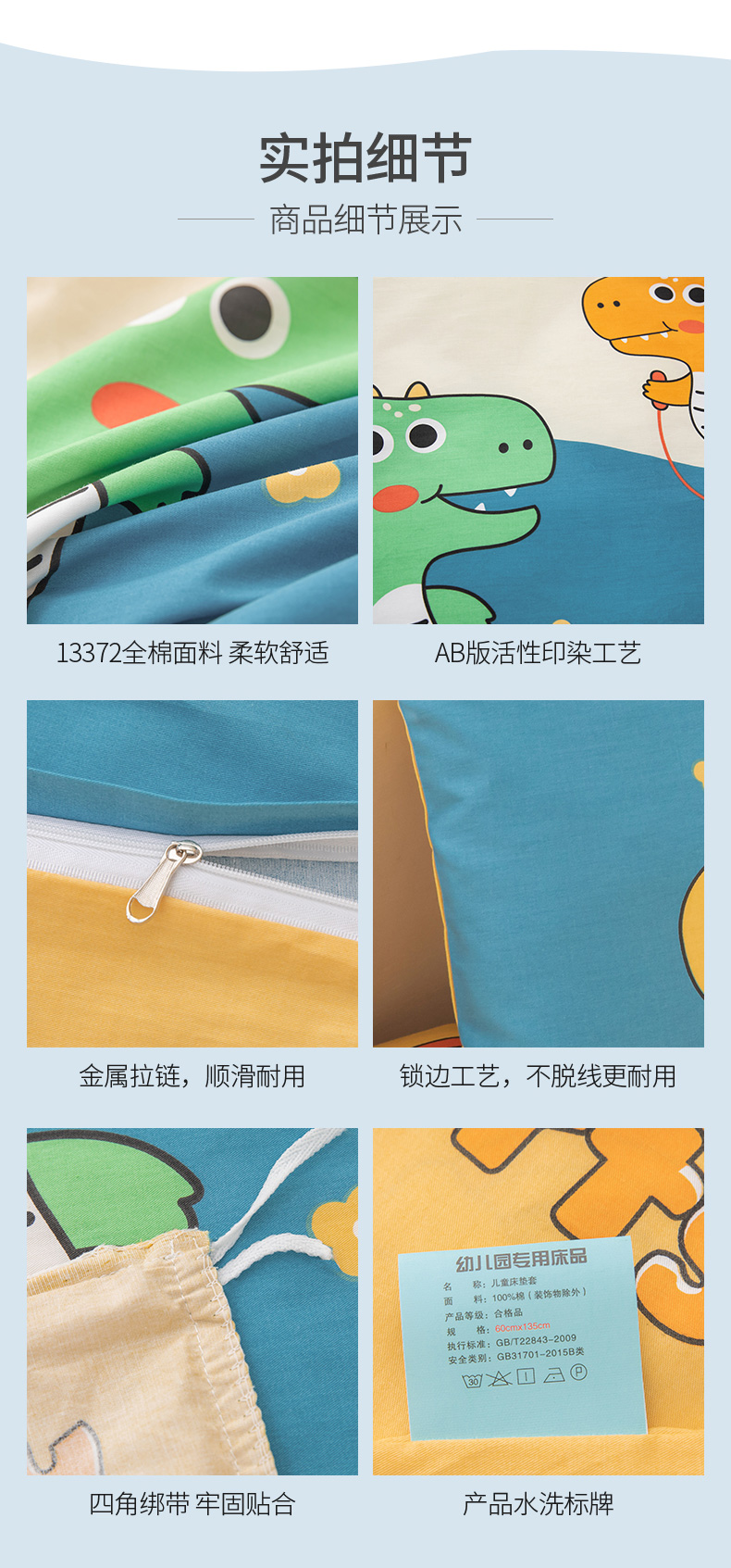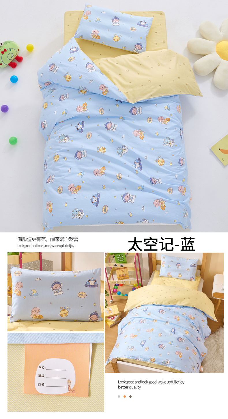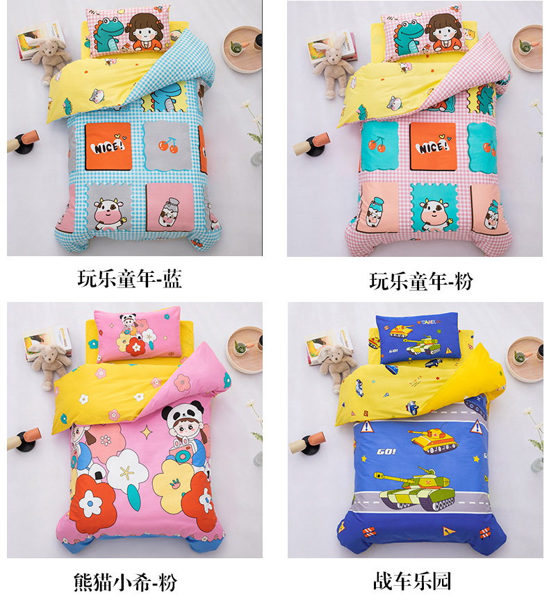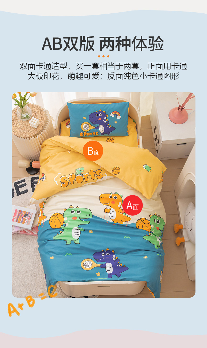 当前位置: 91家纺网 > 商品网购 > 床品套件 > 四件套 > 其它四件套 > 嗨皮宝贝 2025新款全棉纯棉13372幼儿园三件套多件套 爱运动的小恐龙