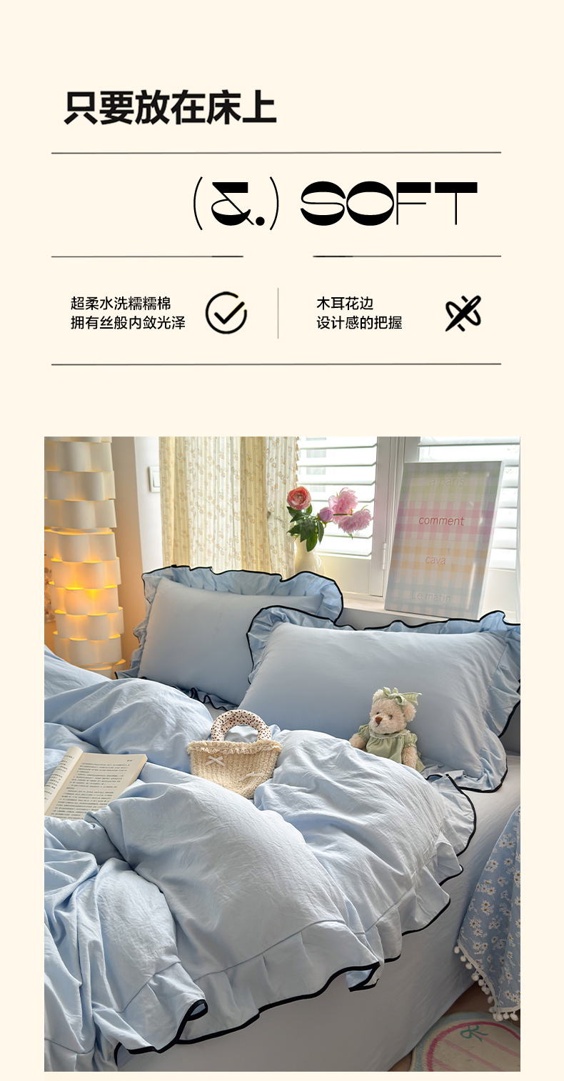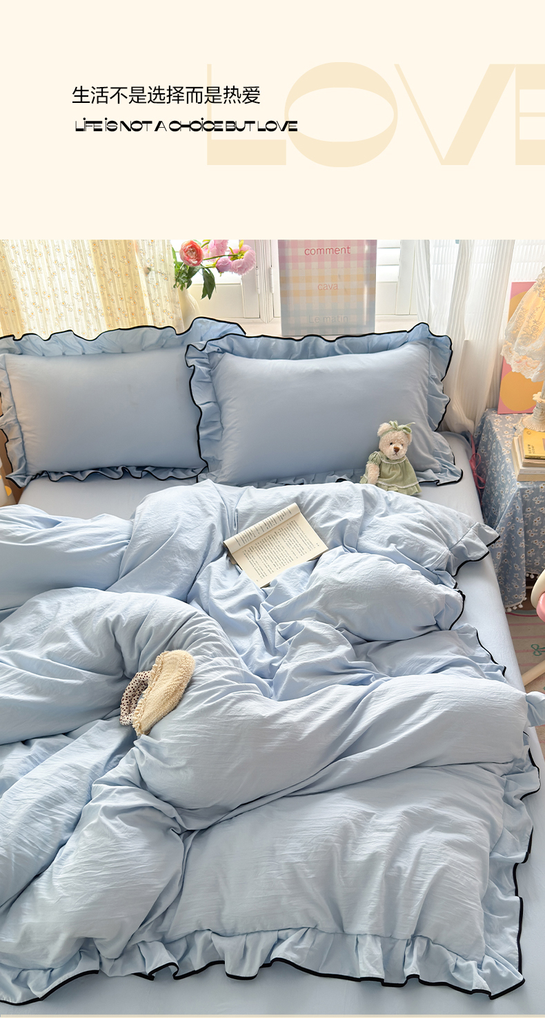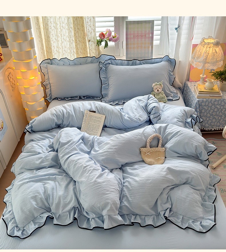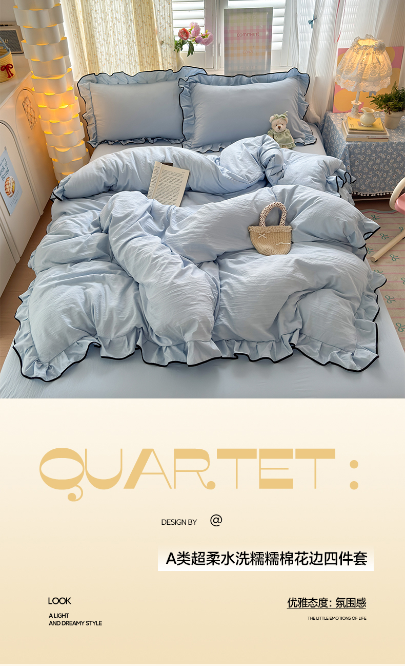 当前位置: 91家纺网 > 商品网购 > 床品套件 > 四件套 > 其它四件套 > 喜颜 2025新款爆款超柔水洗糯糯棉花边四件套学生宿舍单人三件套 柔雾蓝-花边款