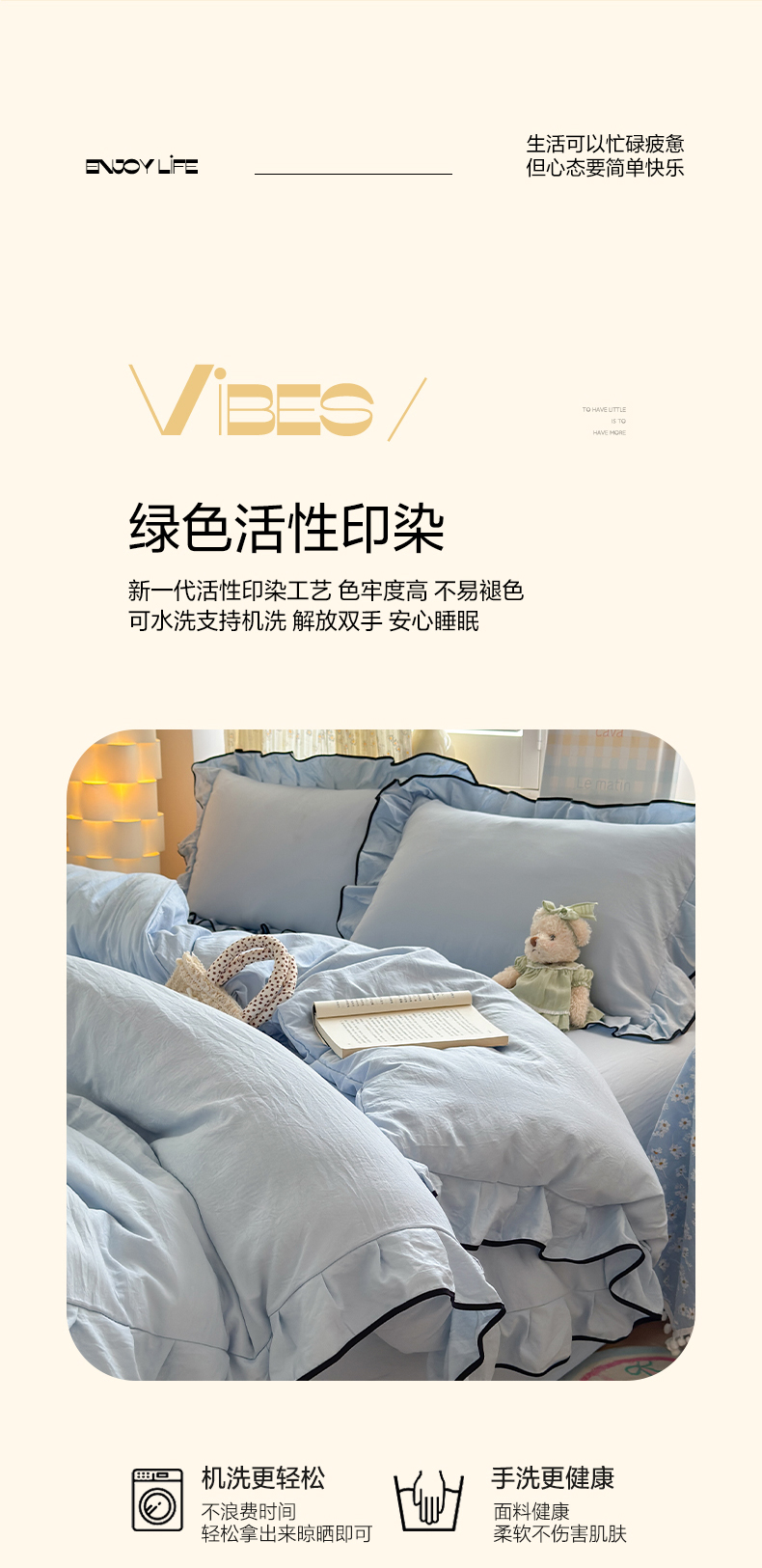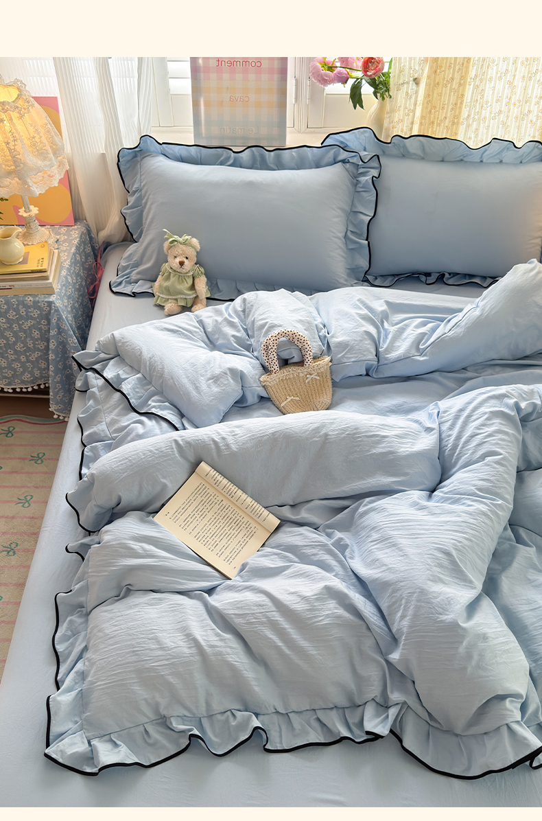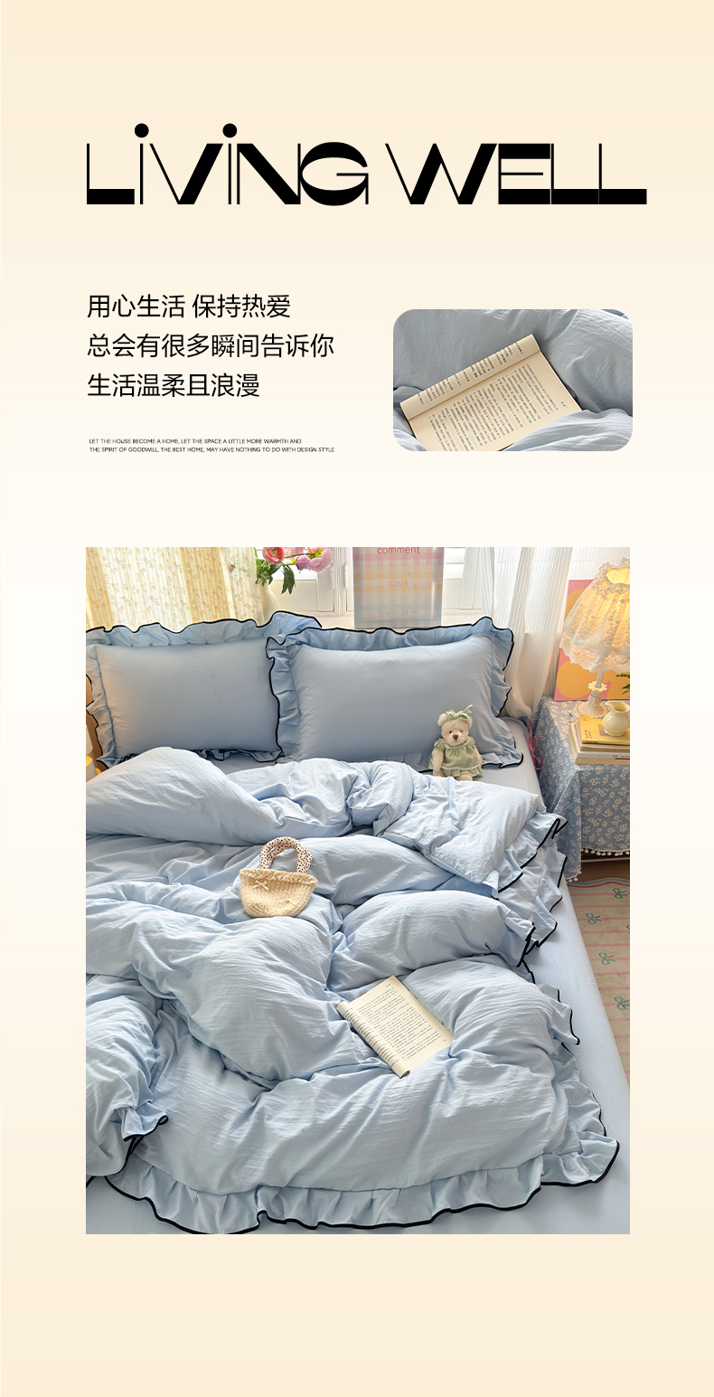 当前位置: 91家纺网 > 商品网购 > 床品套件 > 四件套 > 其它四件套 > 喜颜 2025新款爆款超柔水洗糯糯棉花边四件套学生宿舍单人三件套 柔雾蓝-花边款