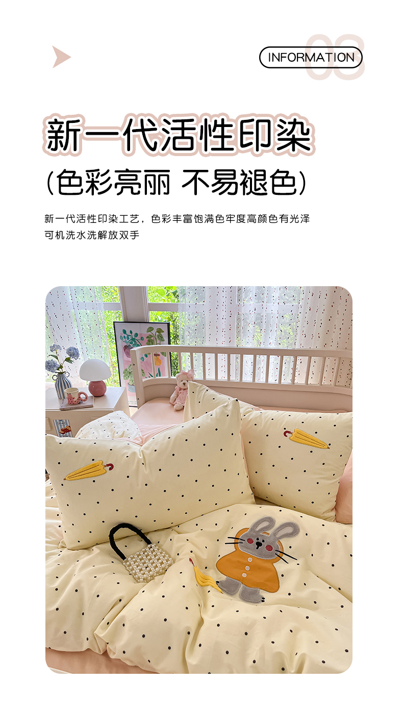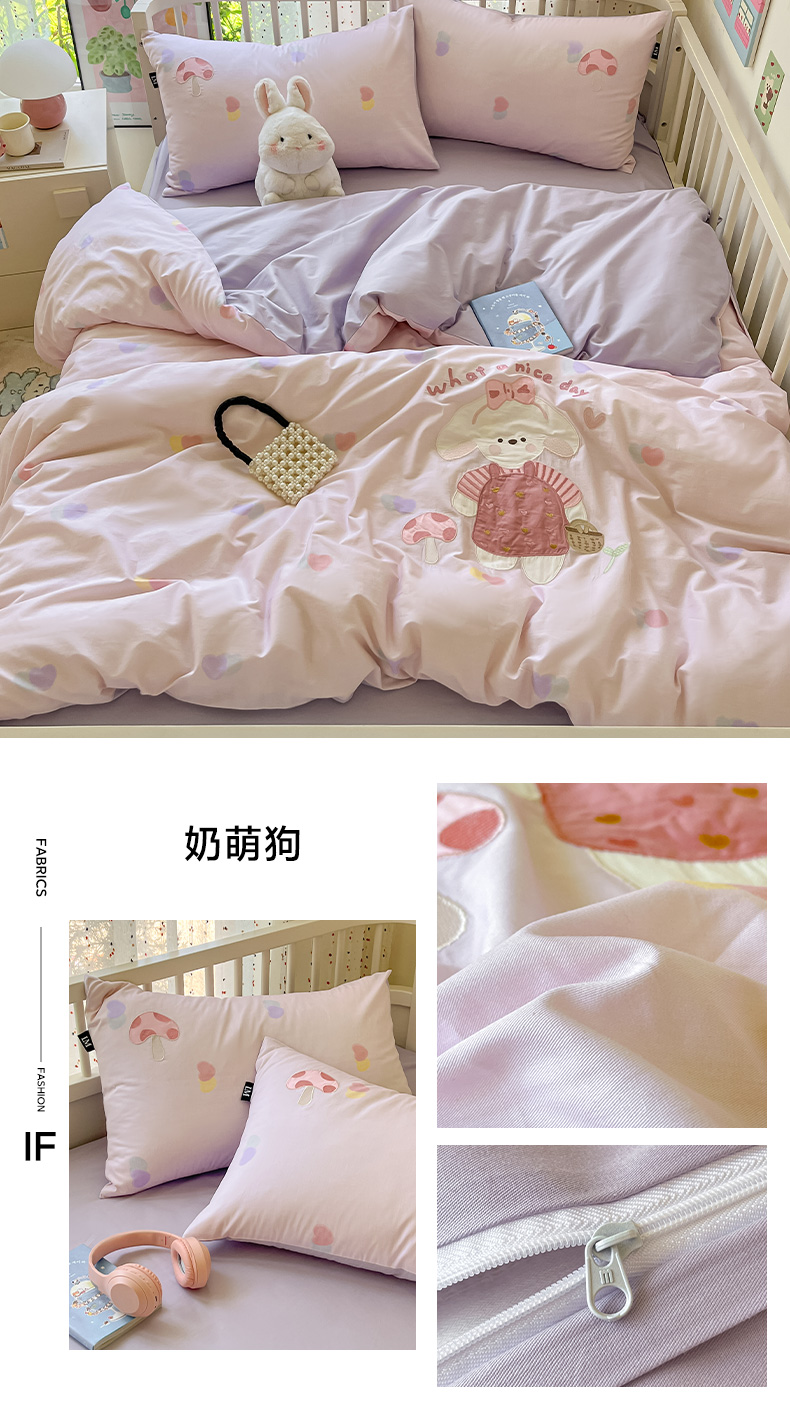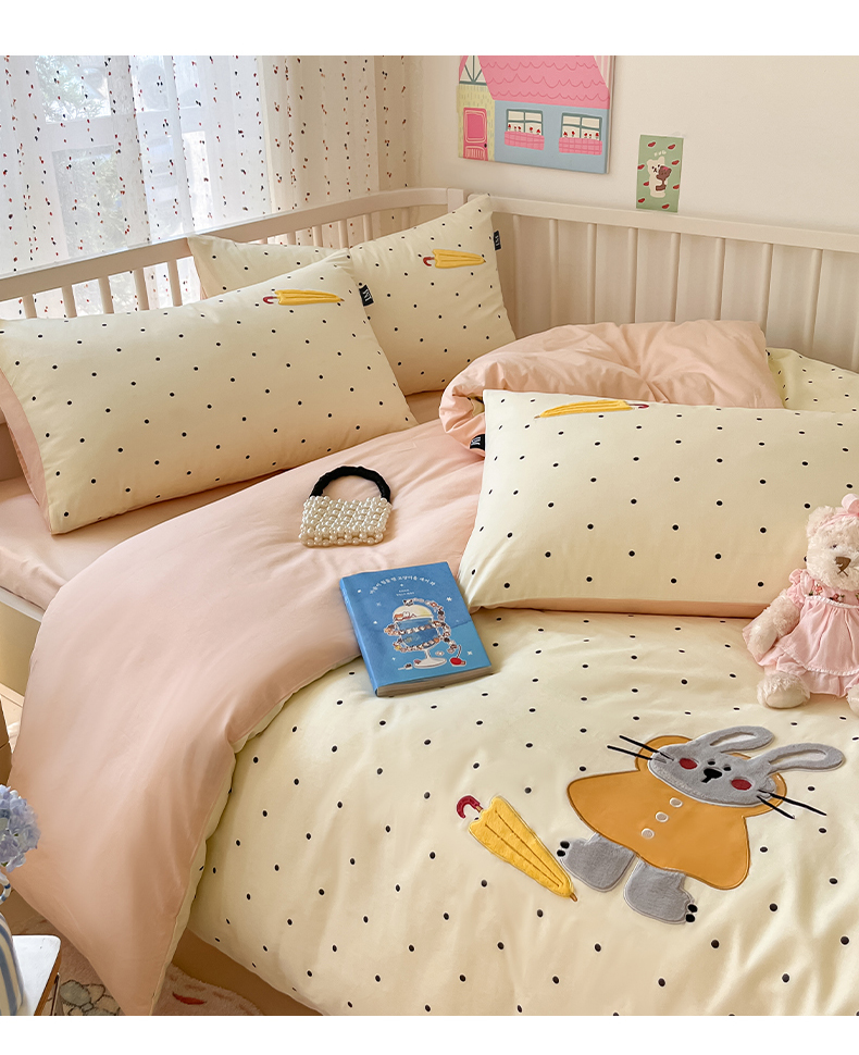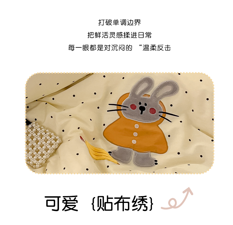 当前位置: 91家纺网 > 商品网购 > 床品套件 > 四件套 > 全棉普通四件套 > 乐美家纺 2025新款亲肤舒适全棉纯棉贴布绣卡通系列四件套 雨伞奶兔