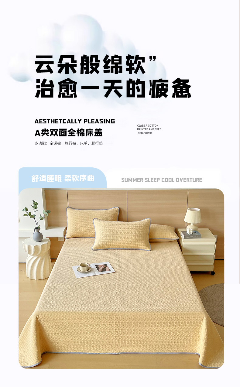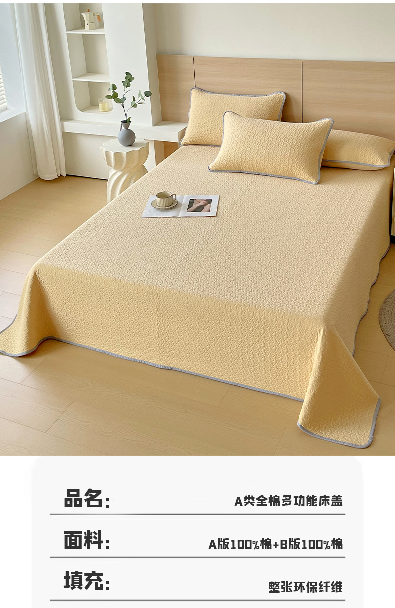 商品名称:春皖家纺 2025新款全棉多功能单床盖 床盖单件 洛格-黄
