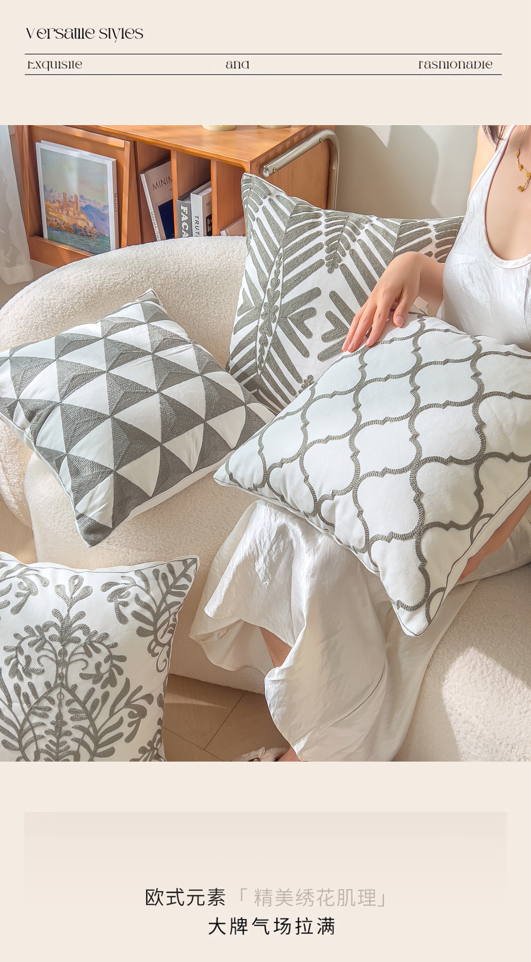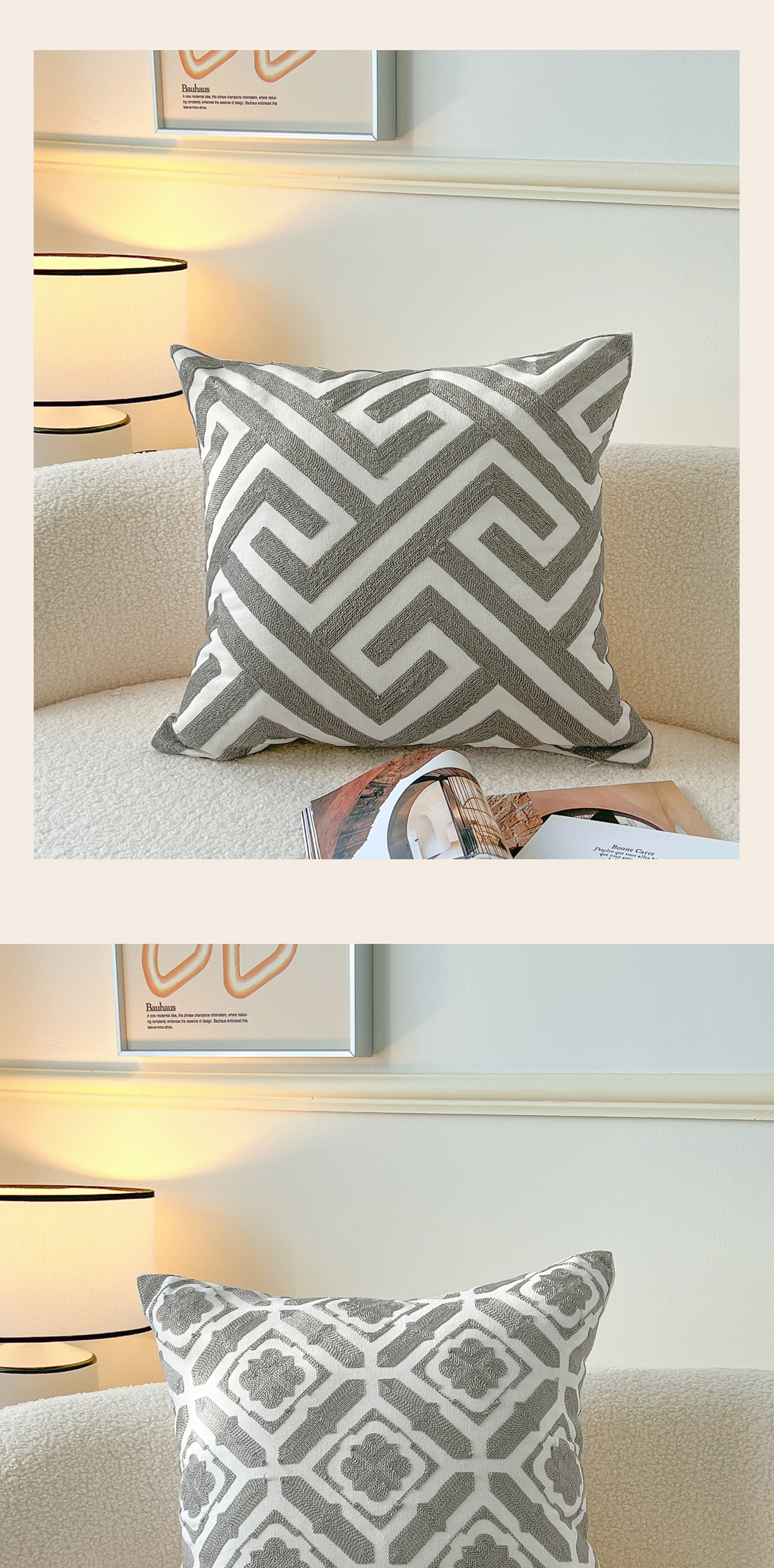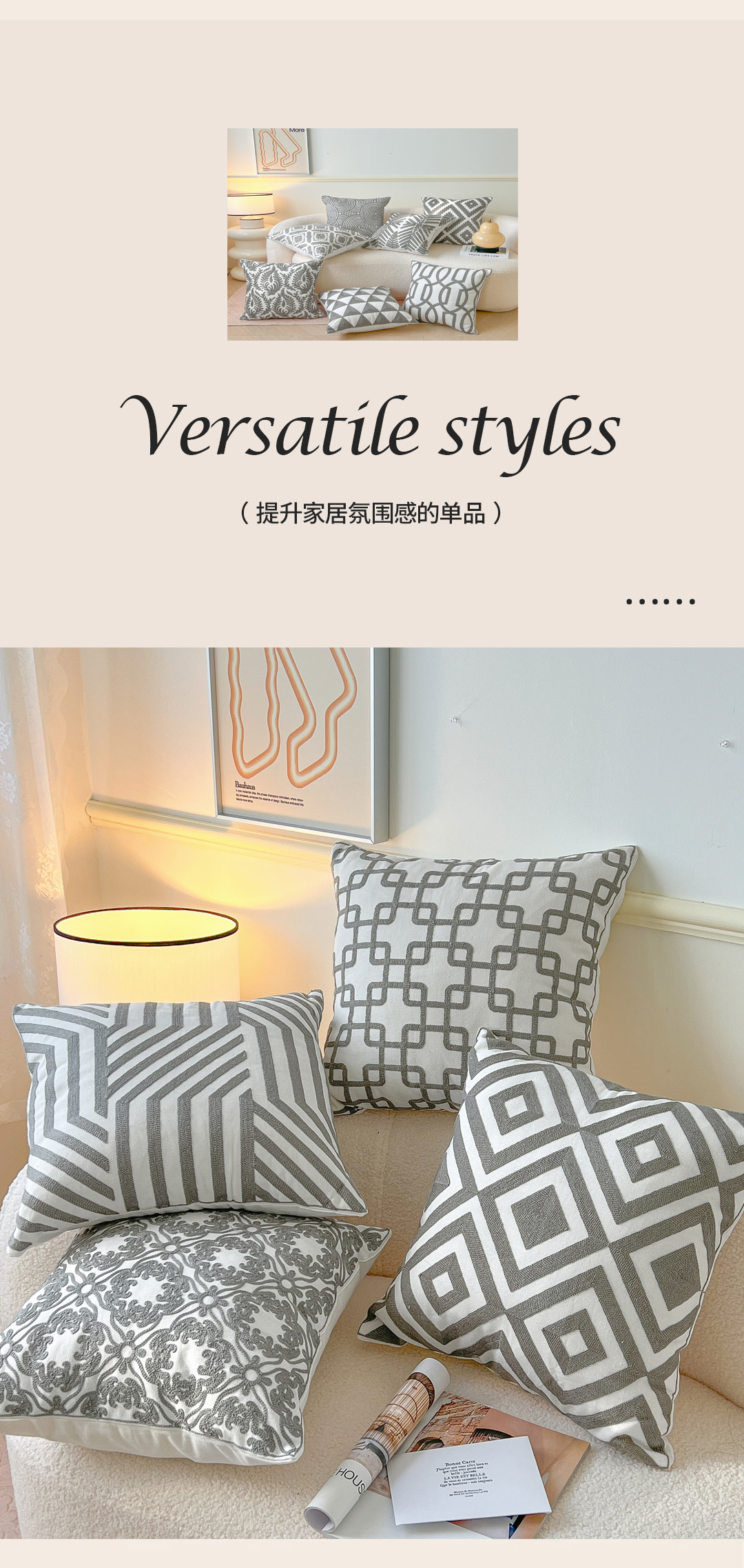 诺可 2025新款全棉毛巾绣抱枕外贸跨境电商直播纯色几何系列-灰色 灰-贝壳纹