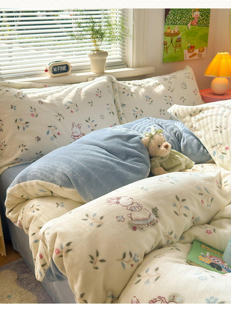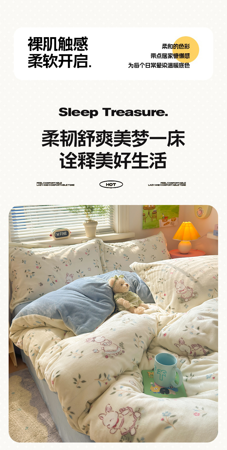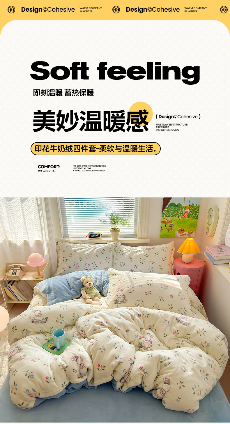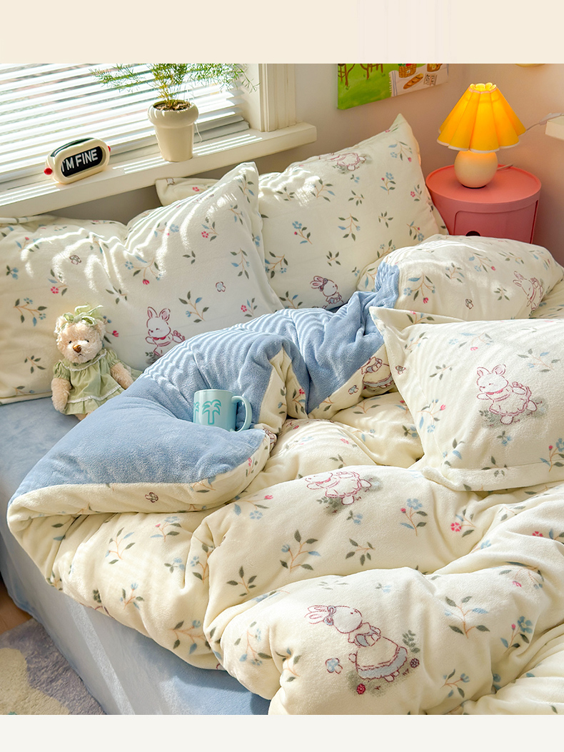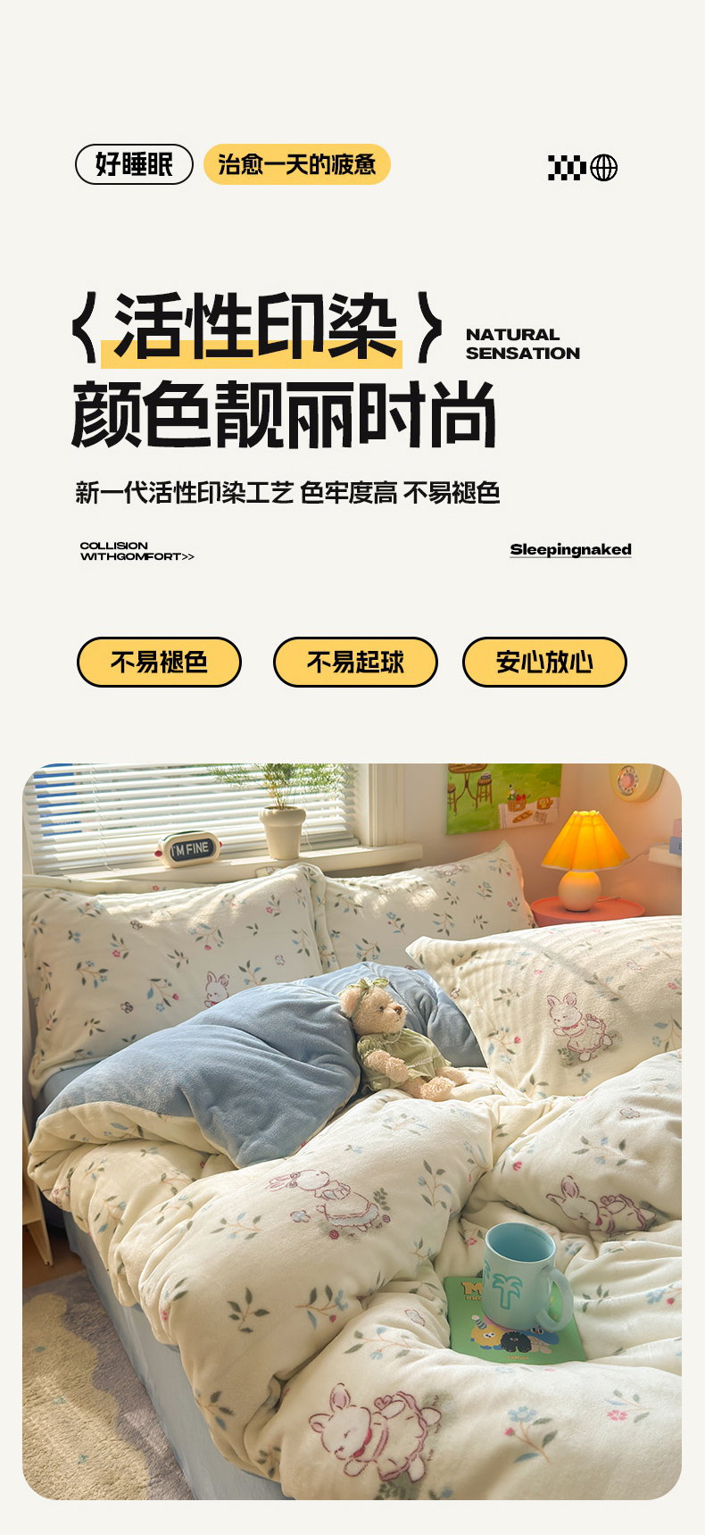 当前位置: 91家纺网 > 商品网购 > 床品套件 > 四件套 > 牛奶绒四件套 > 铭宣 2025新款高克重牛奶绒印花保暖四件套床单床笠单被套款 童话小兔