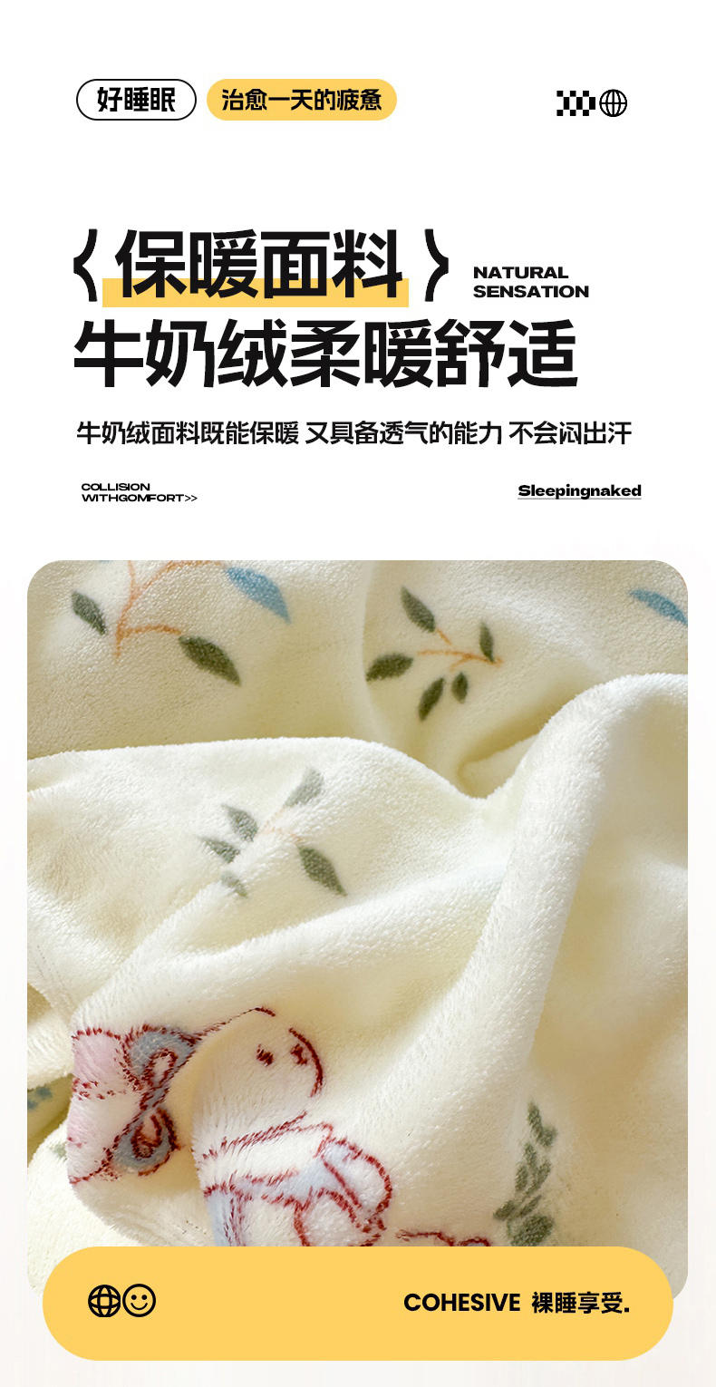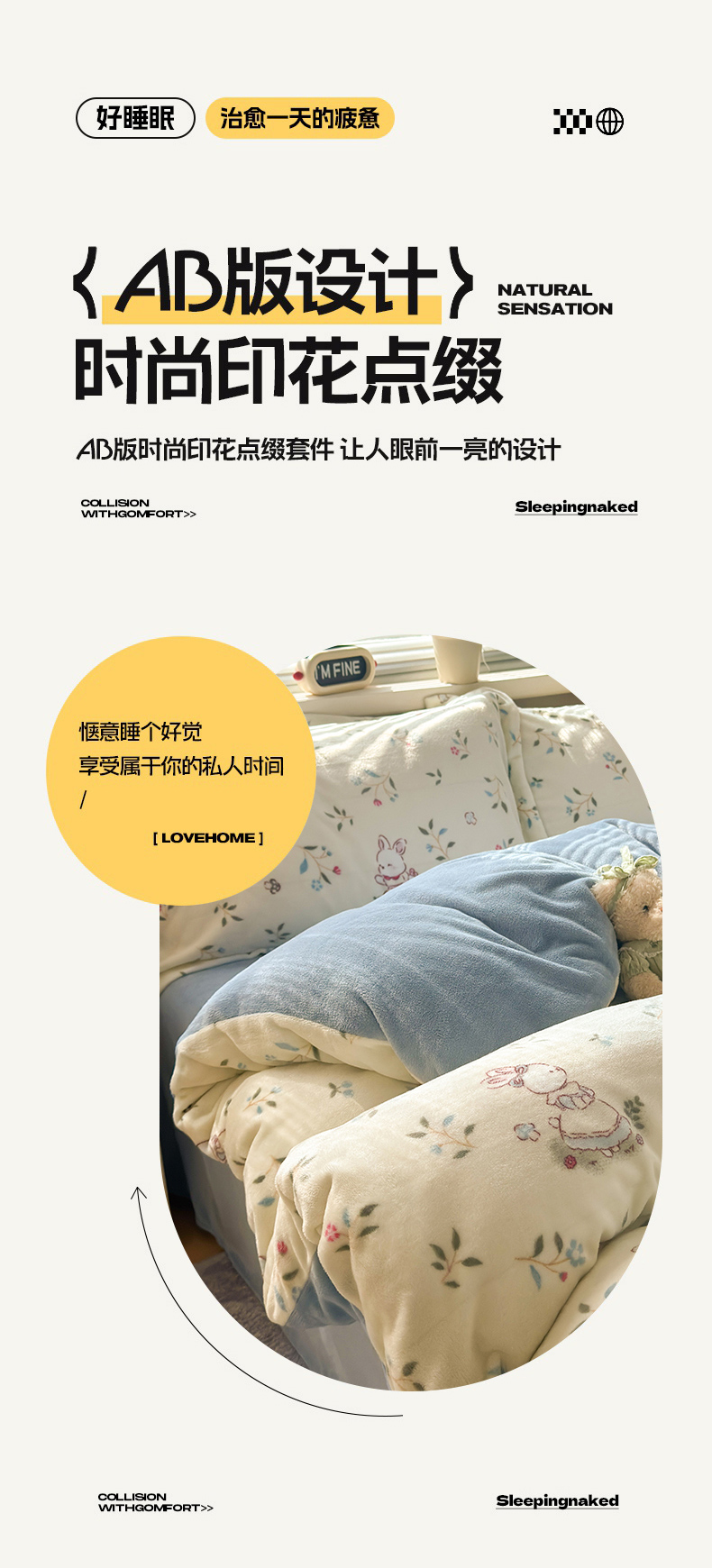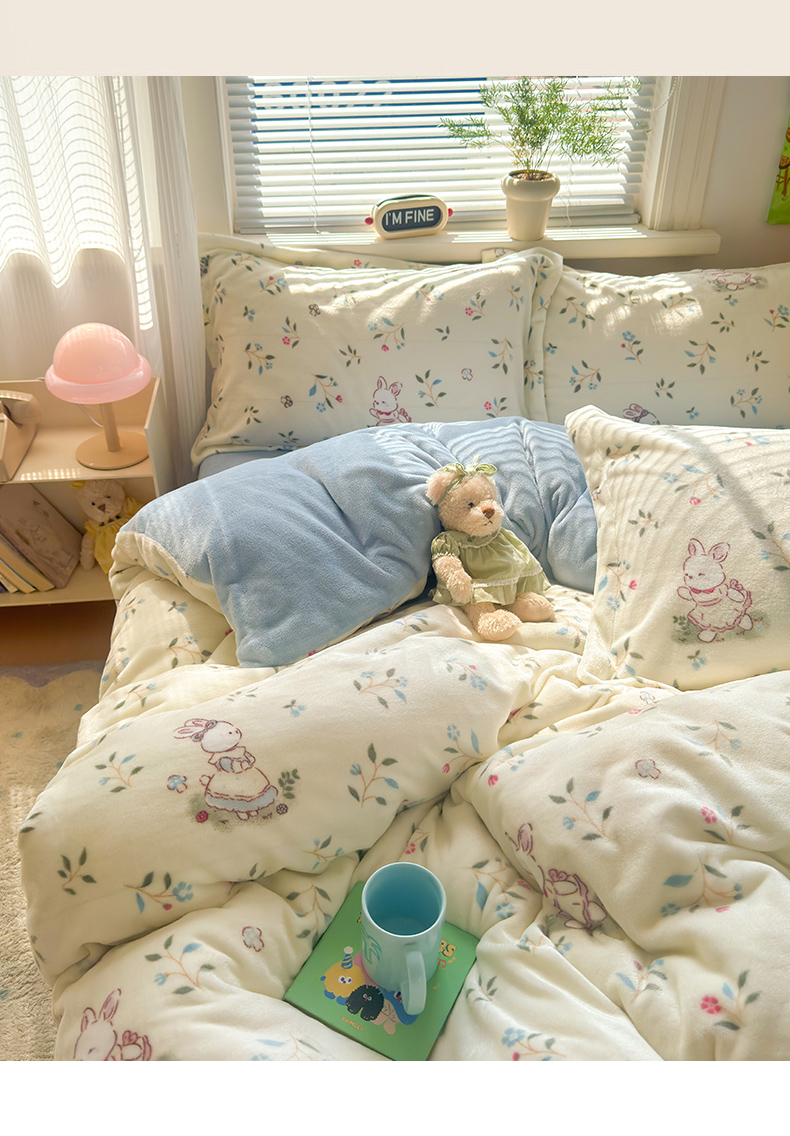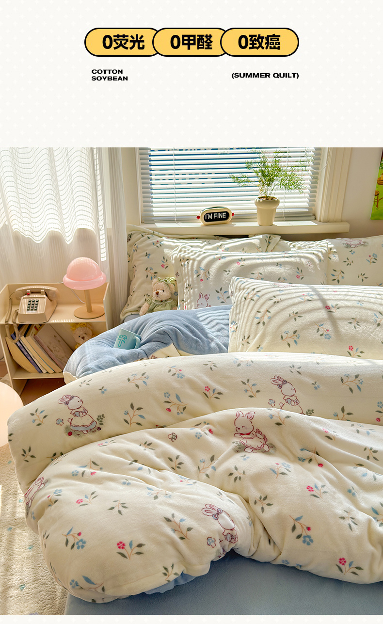 当前位置: 91家纺网 > 商品网购 > 床品套件 > 四件套 > 牛奶绒四件套 > 铭宣 2025新款高克重牛奶绒印花保暖四件套床单床笠单被套款 童话小兔