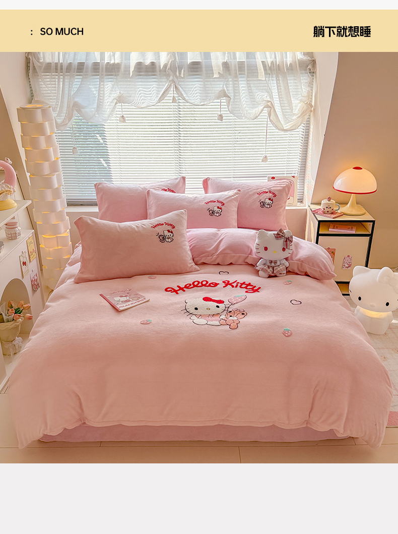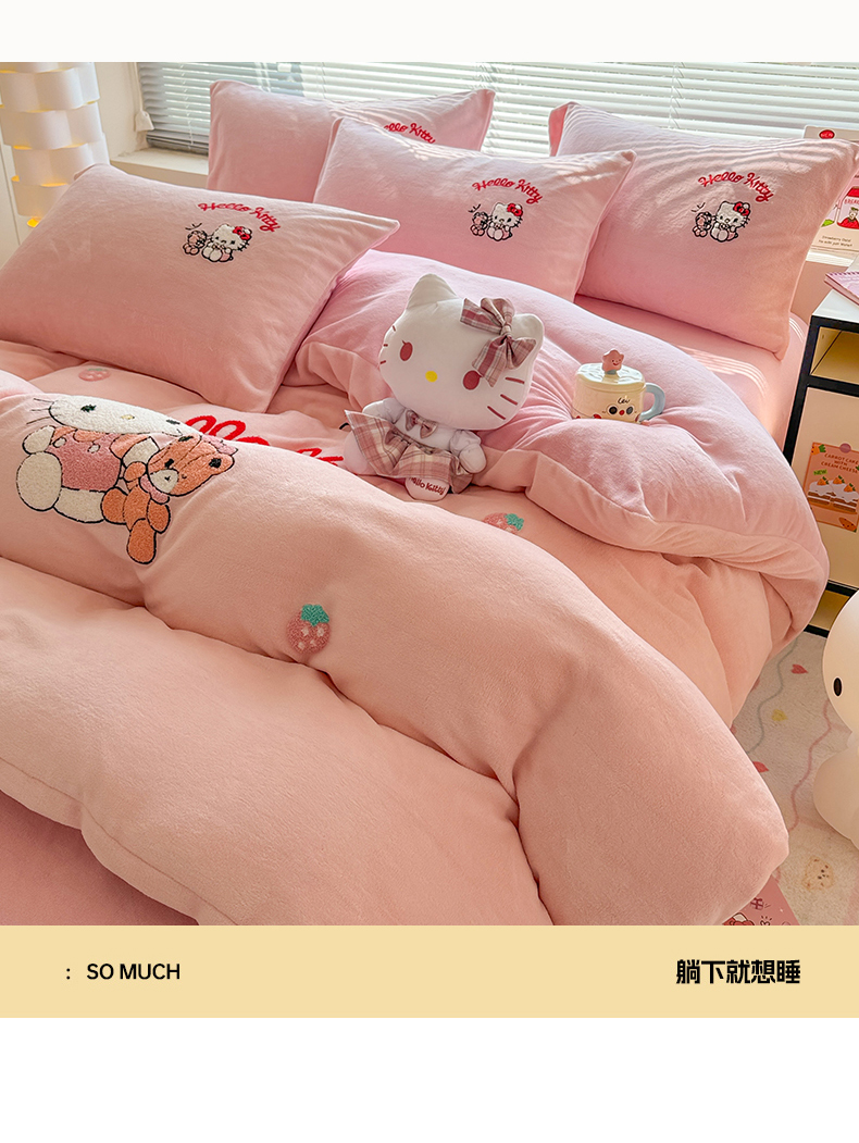 当前位置: 91家纺网 > 商品网购 > 床品套件 > 四件套 > 牛奶绒四件套 > 沐辰 2025新款A类牛奶绒三丽欧毛巾绣四件套 暖心凯蒂猫