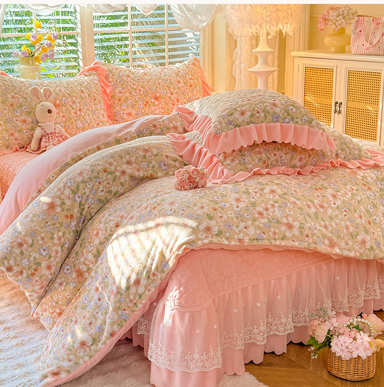 当前位置: 91家纺网 > 商品网购 > 床品套件 > 四件套 > 牛奶绒四件套 > 九诺家纺 2025新款直播热款双层蕾丝花边牛奶绒印花床盖四件套床盖单件三件套 时光-花海