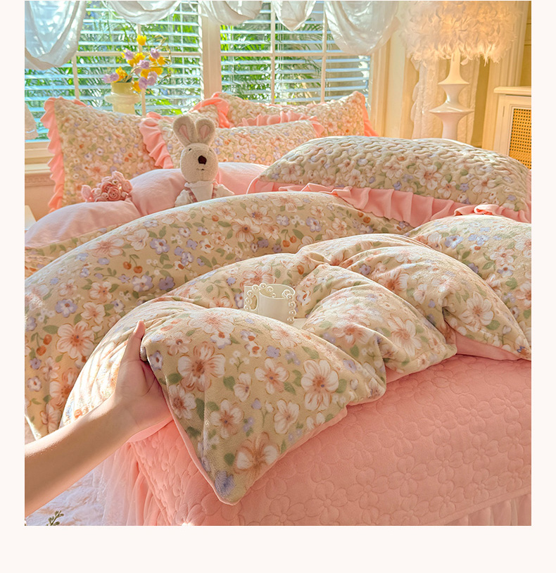 当前位置: 91家纺网 > 商品网购 > 床品套件 > 四件套 > 牛奶绒四件套 > 九诺家纺 2025新款直播热款双层蕾丝花边牛奶绒印花床盖四件套床盖单件三件套 时光-心动旋律