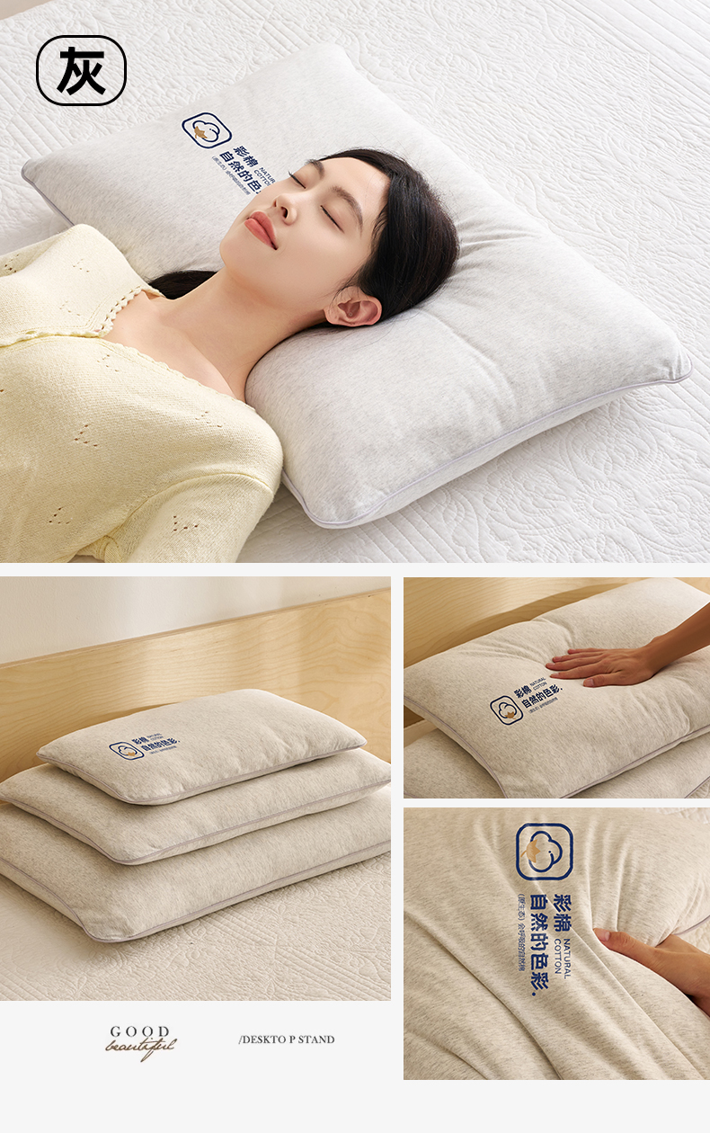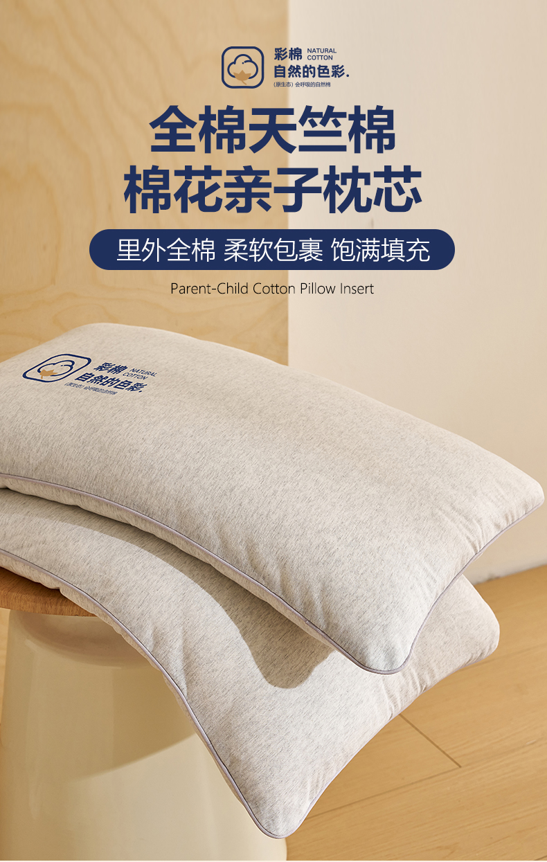 商品名称:乐可 2025新款全棉天竺棉棉花亲子枕 天竺棉棉花枕-灰-儿童