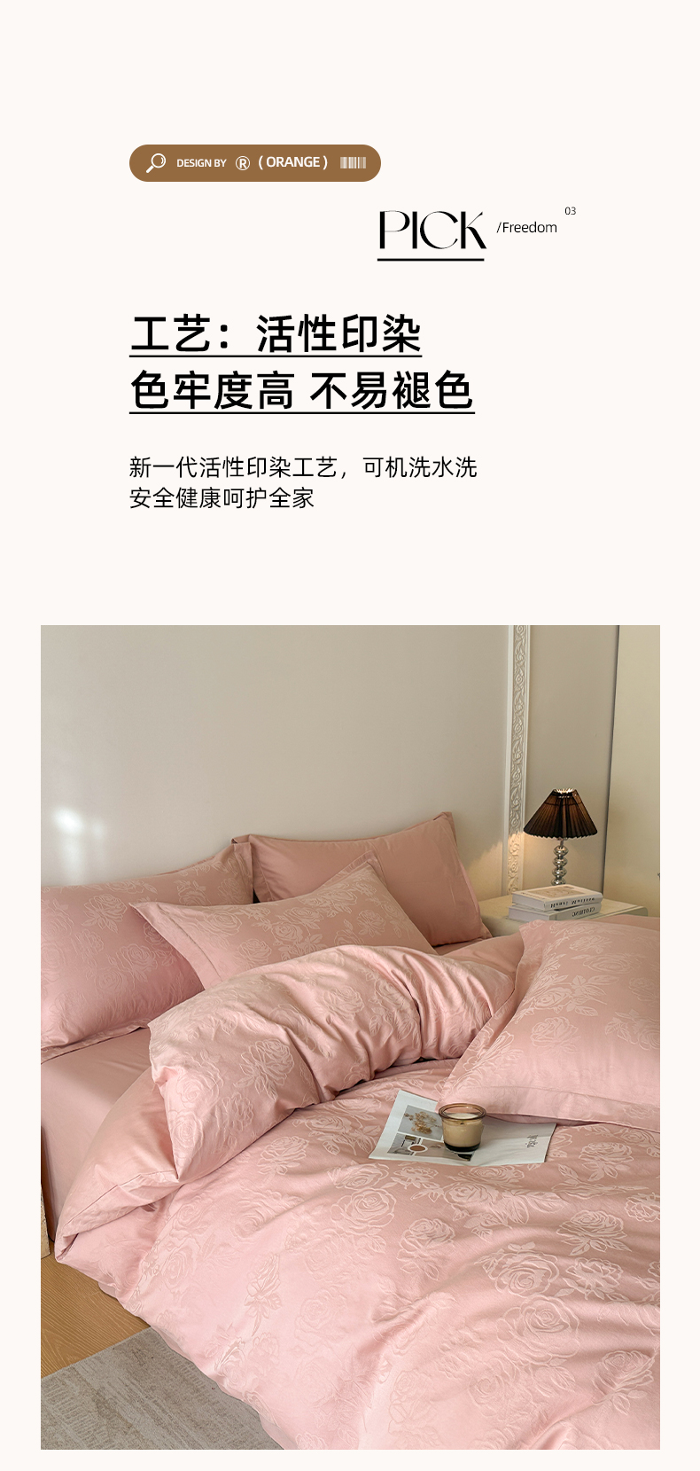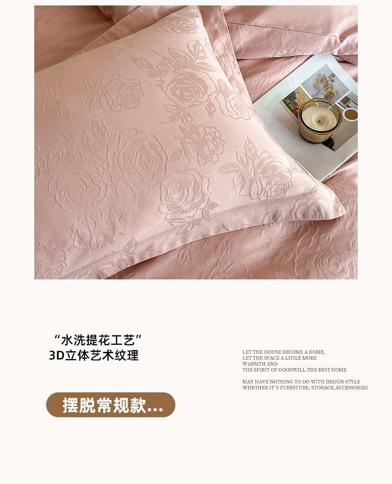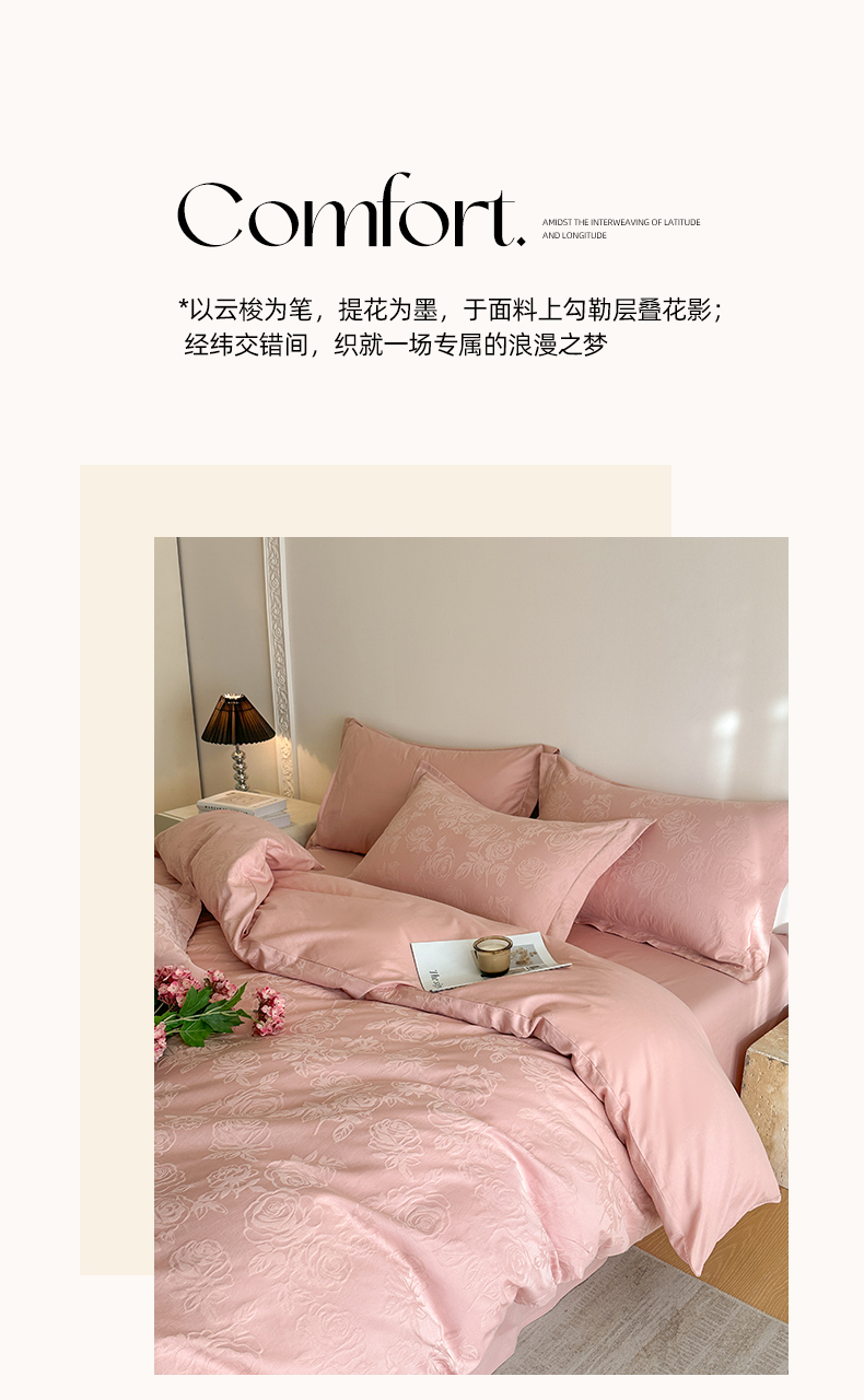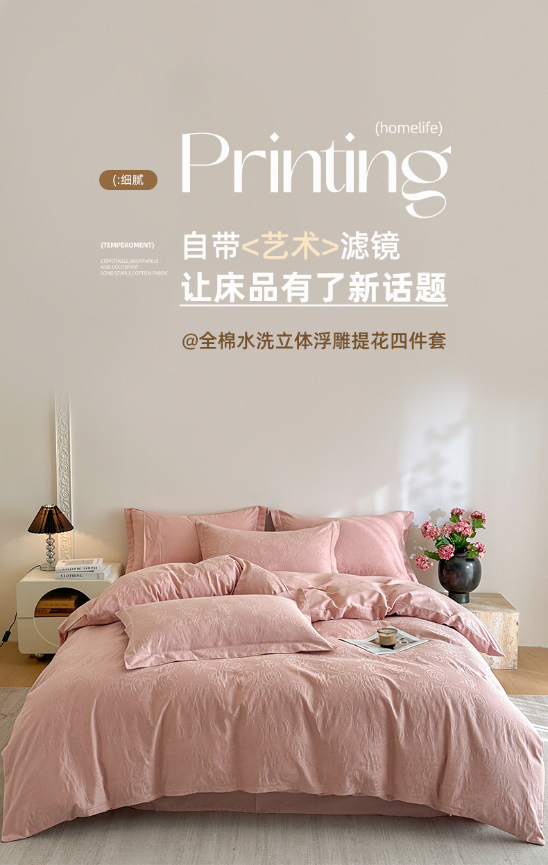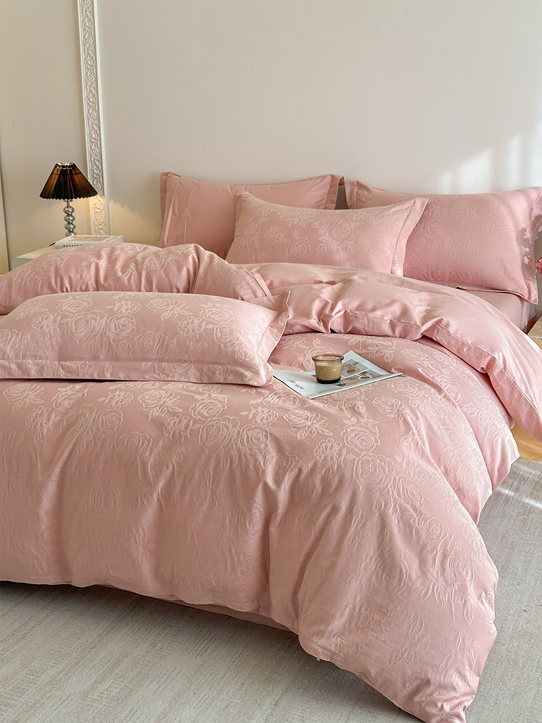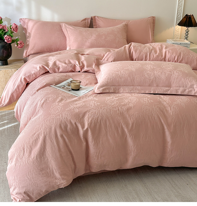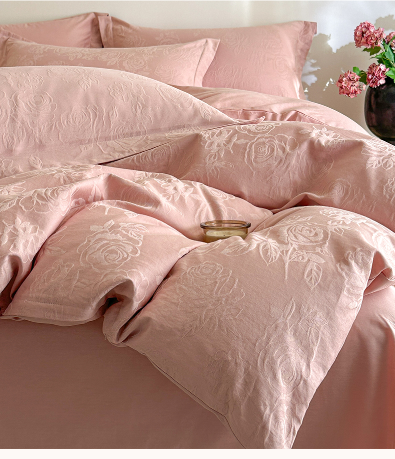 商品名称:格里芬家纺 2026新款全棉水洗立体浮雕提花纯棉四件套 玫瑰之恋-浓粉