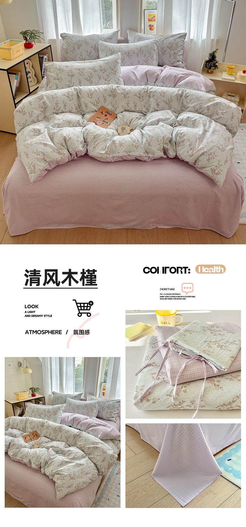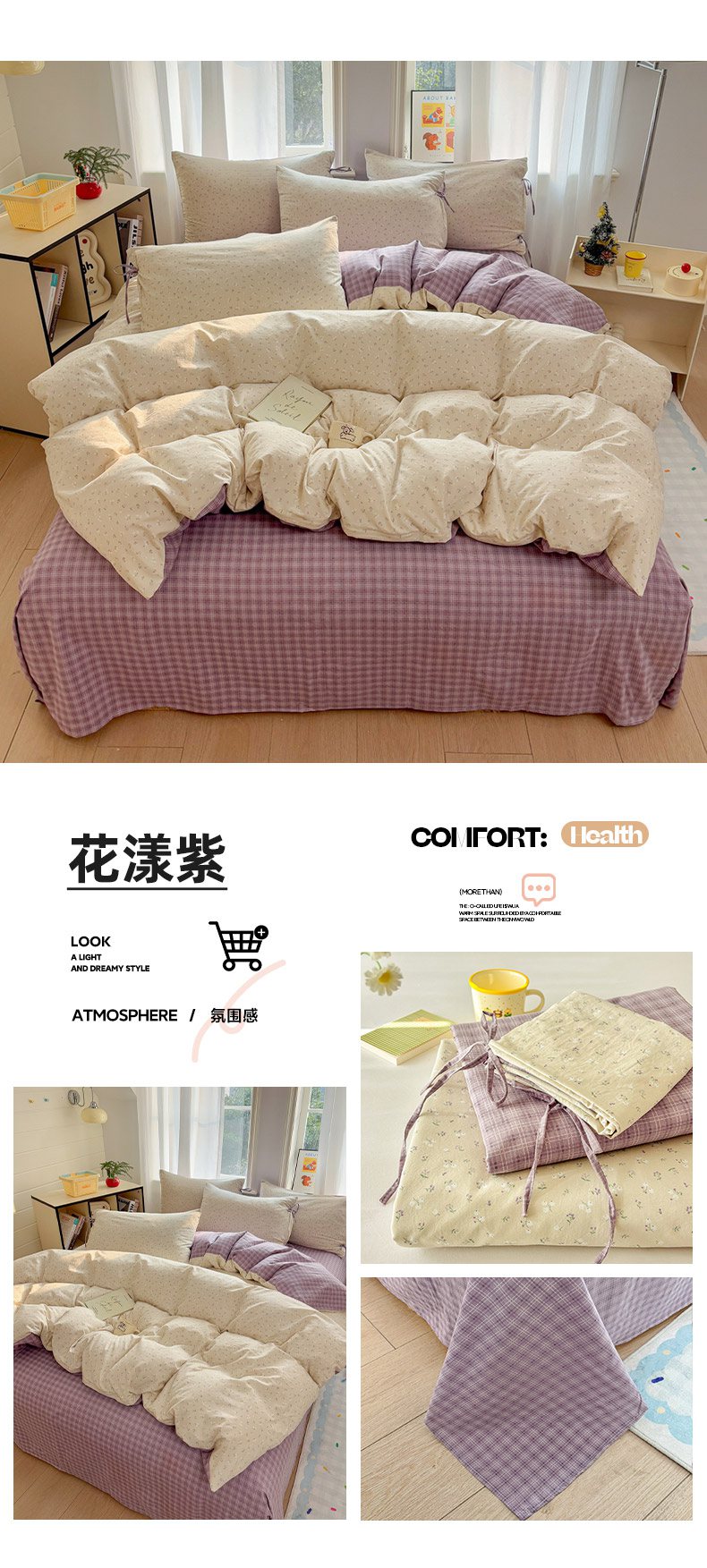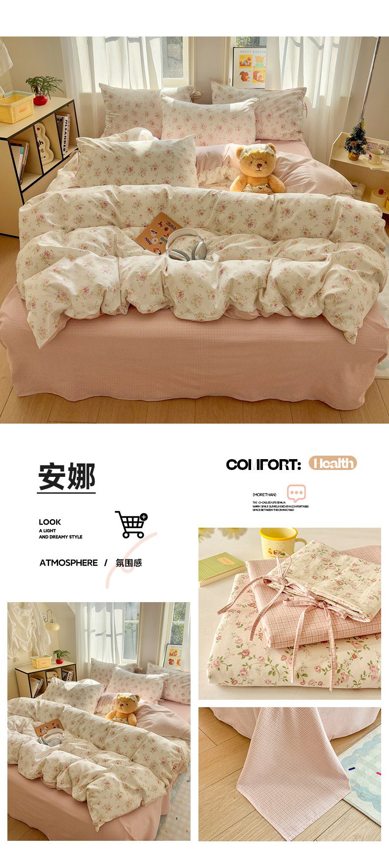 当前位置: 91家纺网 > 商品网购 > 床品套件 > 四件套 > 化纤普通四件套 > 金梦拉家纺 2026新款小清新绑带格纹碎花系列四件套-花园里系列 花园里-芳菲粉