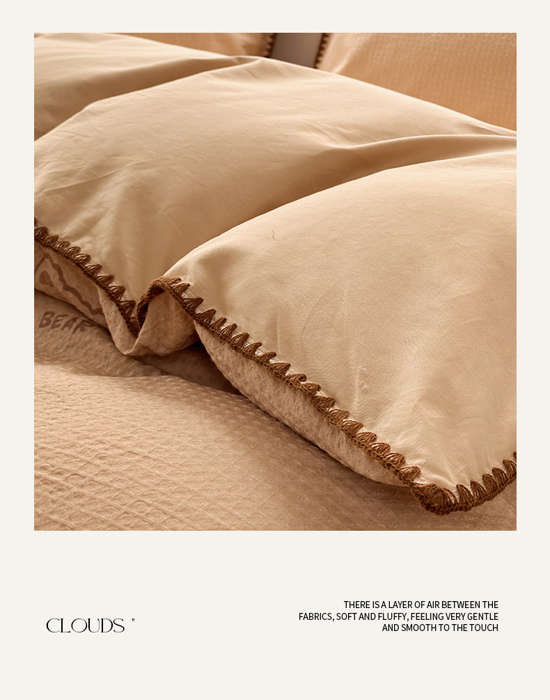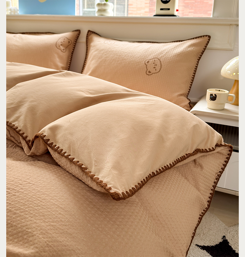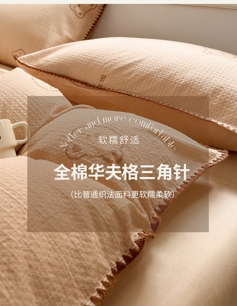 雯雨家纺 2026新款全棉华夫格三角针被套 萌动时光咖