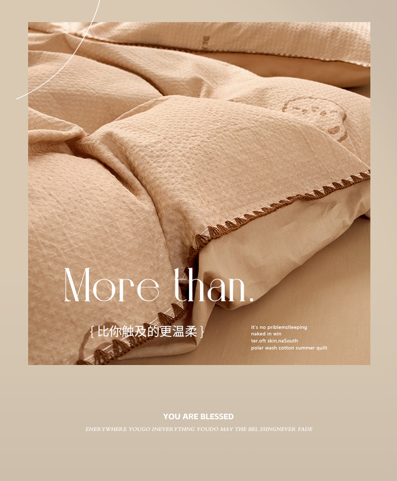 • 91家纺网 家纺一手货源 找家纺 雯雨家纺 2026新款全棉华夫格三角针被套 萌动时光咖