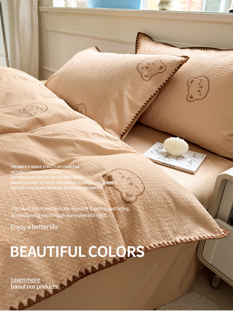 当前位置: 91家纺网 > 商品网购 > 床上用品 > 被套 > 雯雨家纺 2026新款全棉华夫格三角针被套 萌动时光咖