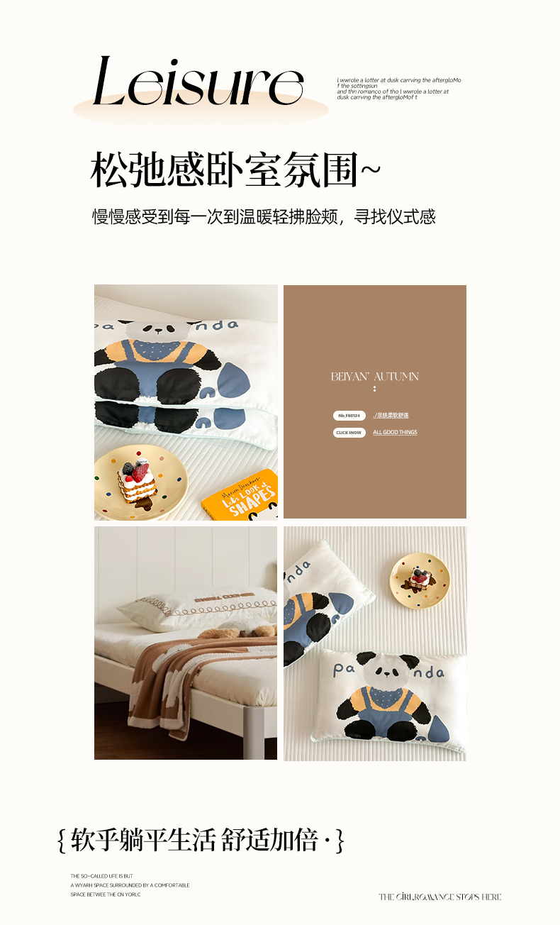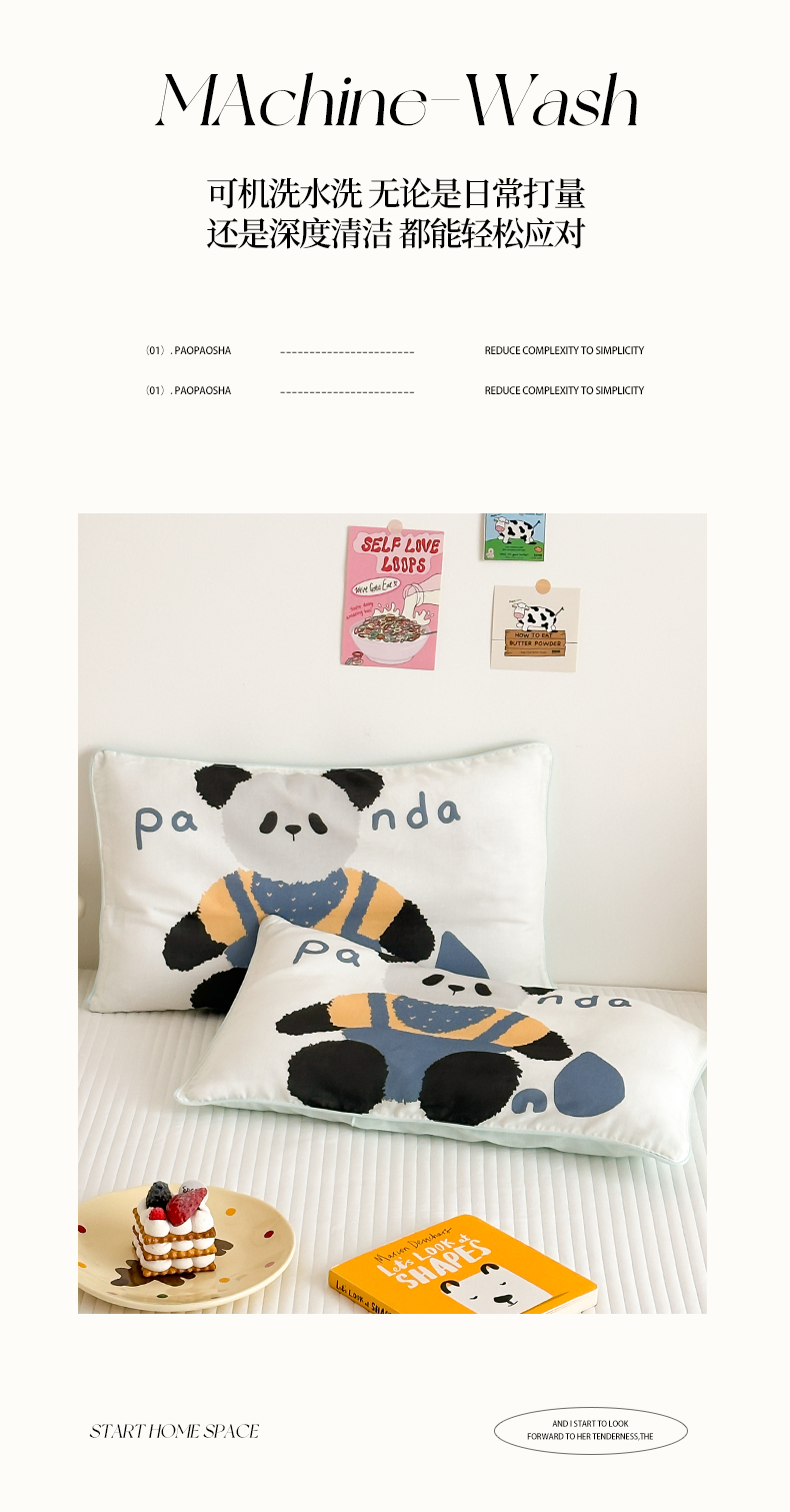 商品名称:嗨生活 2026新款全棉纯棉双层纱大版枕套儿童枕套幼儿园枕套枕芯单品枕套枕套单件 大熊猫