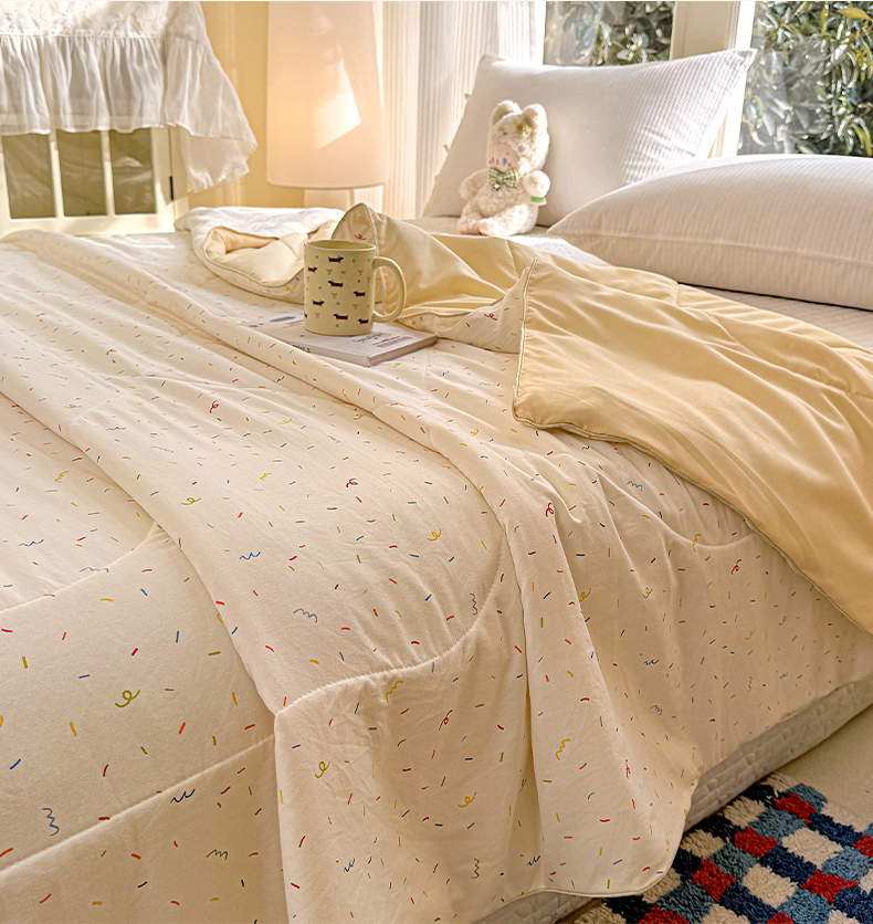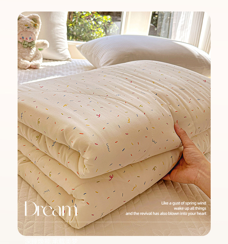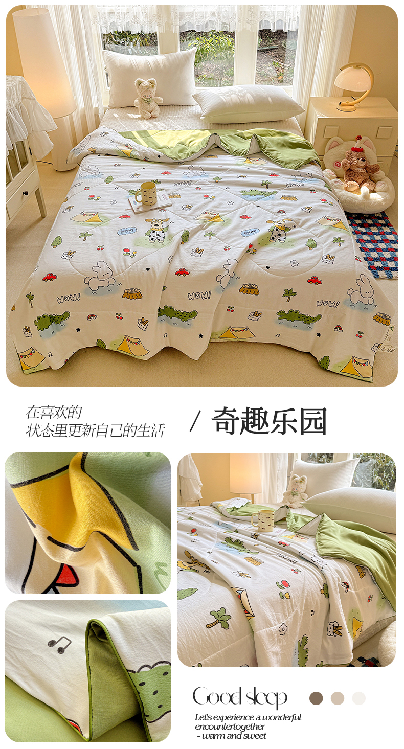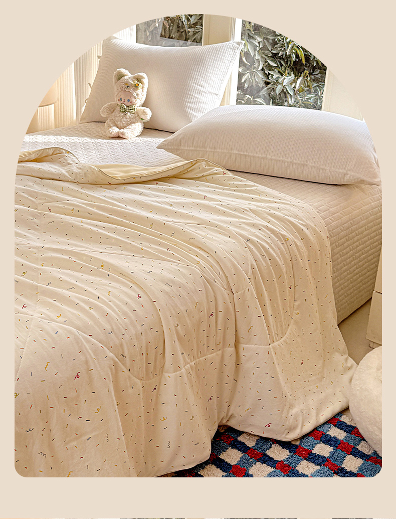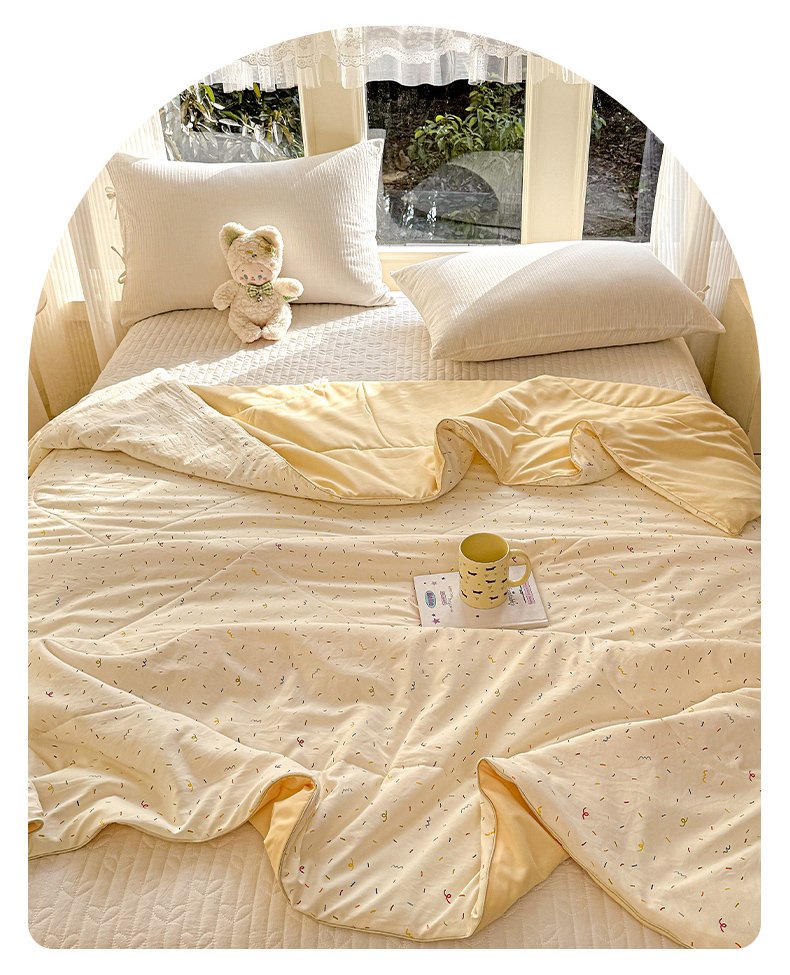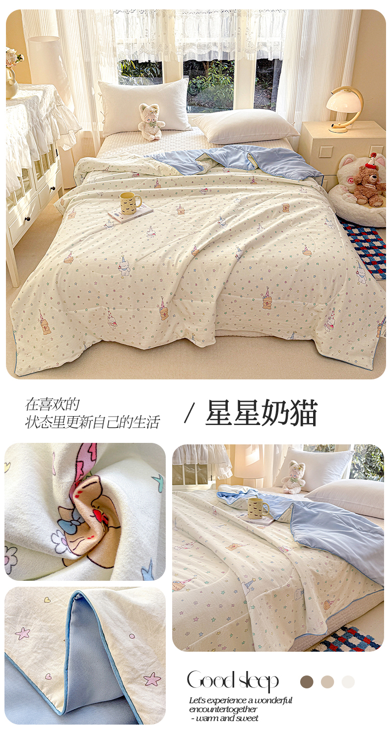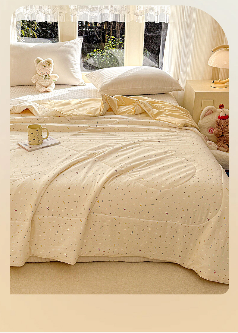 商品名称:梦恬佳 2026新款水洗皱皱纱卡通印花夏凉被 奶油芝士