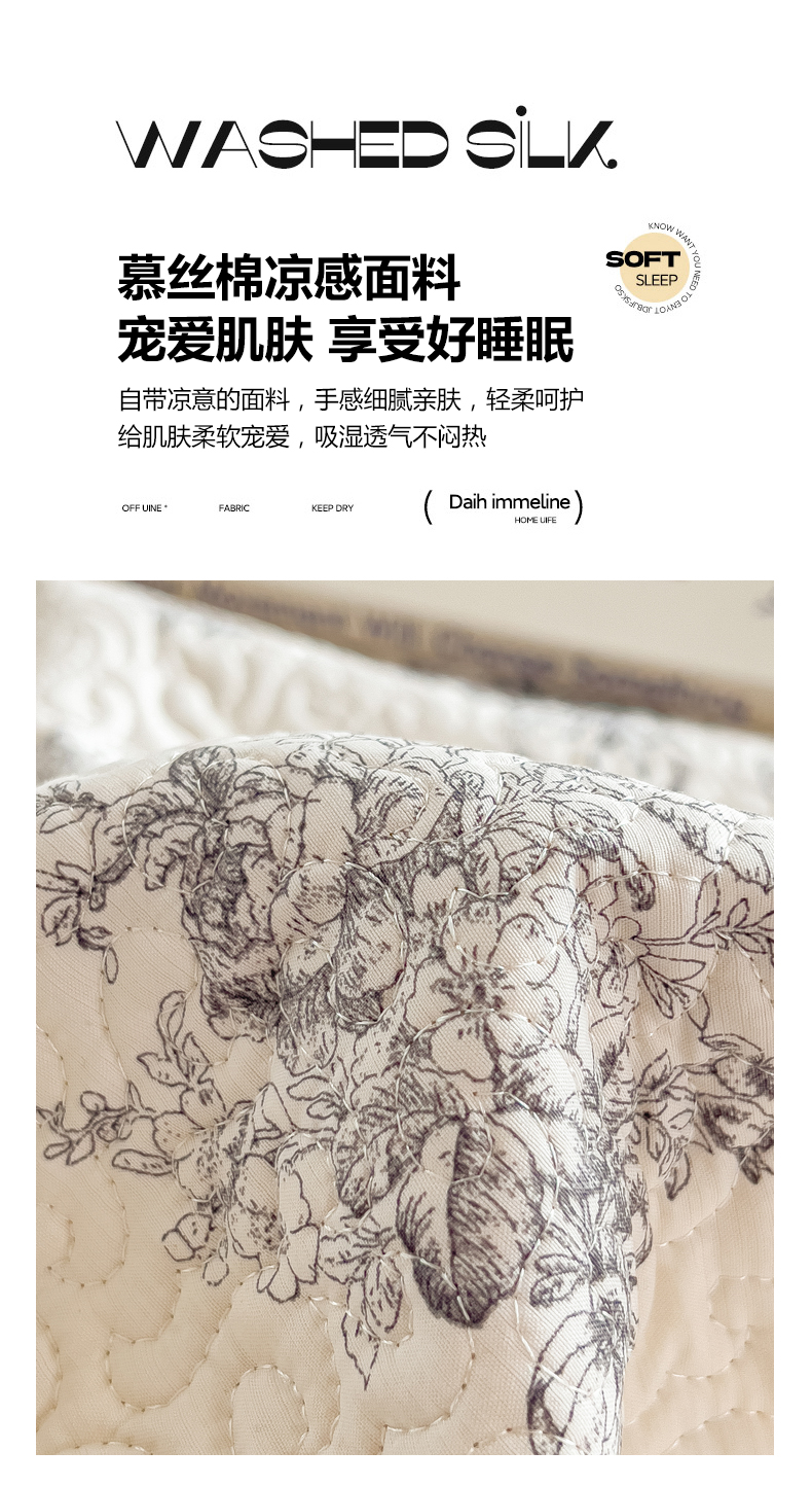 • 91家纺网 家纺一手货源 找家纺 叠派家纺 2026新款A类印花慕丝绵花边款床盖系列(抽空压缩可供跨境)提供买家秀 墨芳+灰