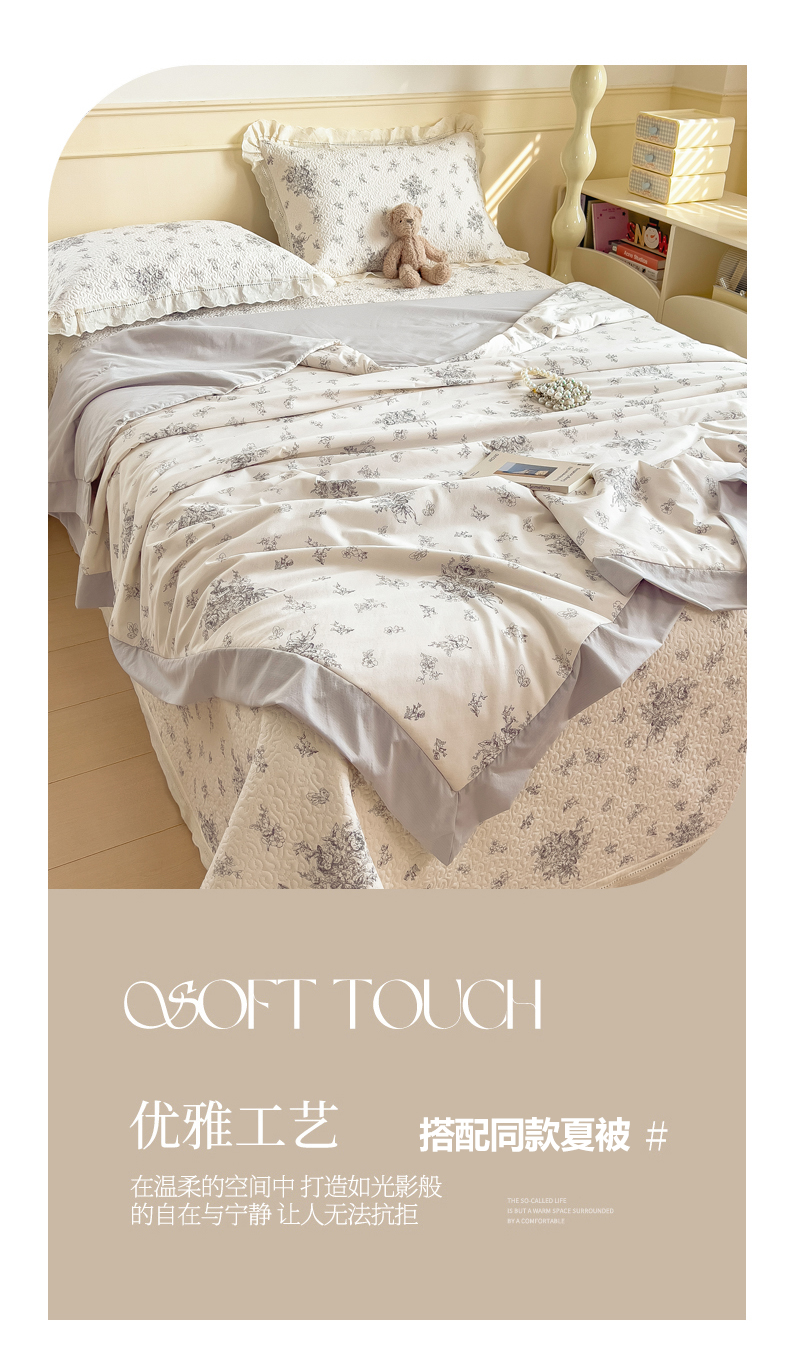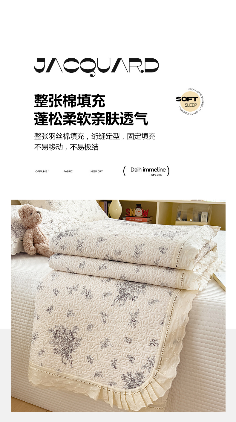 (总)叠派家纺 2026新款A类印花慕丝绵花边款床盖系列(抽空压缩可供跨境)提供买家秀,莫兰迪+浅紫,洛可可+粉,蓝庭叙+灰,锦芙+驼,金兰+黄,凡尔赛+粉,蓝漪+蓝,洛雅+黛紫,墨芳+灰,清漫+绿,波点序章+驼,青妍+粉,星心兔语+粉,熊兔叙+蓝,云菇森林+浅紫,木马童谣+灰,蛋糕熊+绿,甜梦熊+浅粉