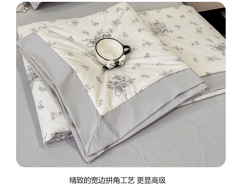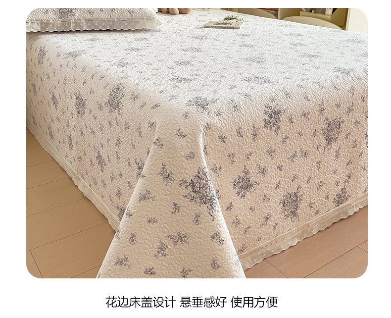 叠派家纺 2026新款A类印花慕丝绵花边款床盖系列(抽空压缩可供跨境)提供买家秀 墨芳+灰