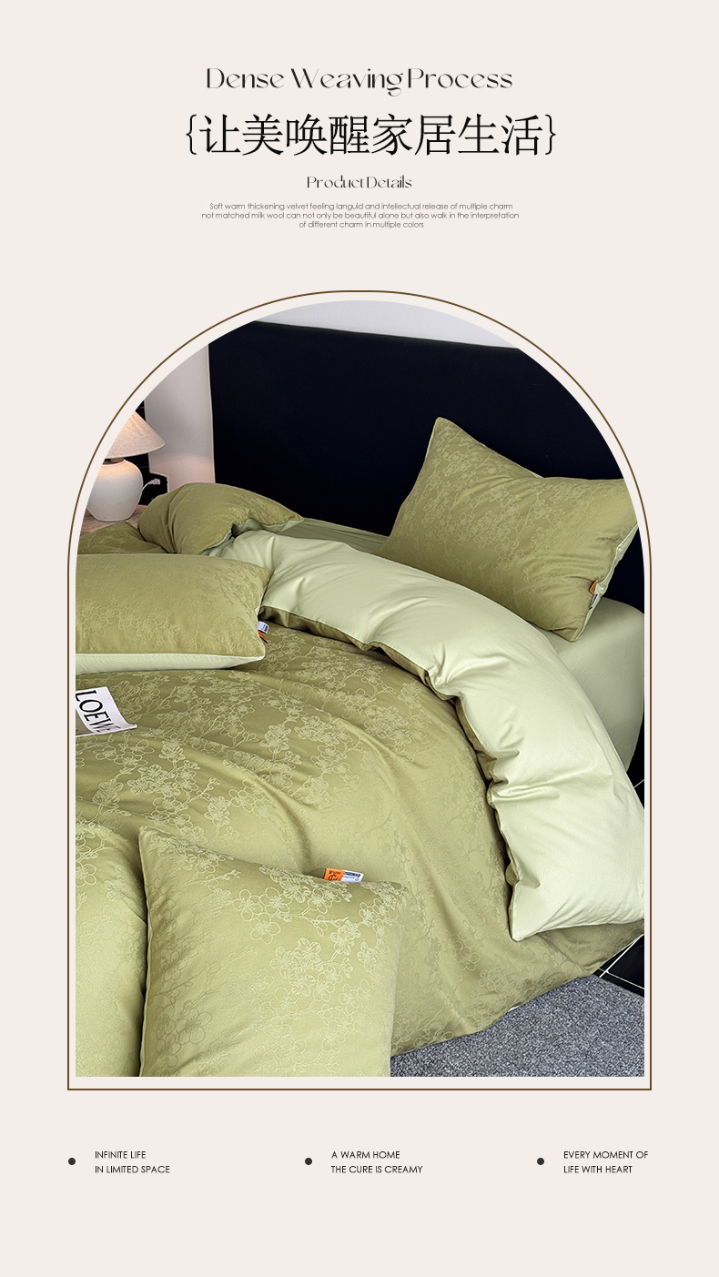 (总)简宜家居(朝初家纺) 2025新款宽边提花牛奶绒四件套,琉璃-草绿,琉璃-奶白,奈斯-粉,奈斯-灰,奈斯-咖,奈斯-绿