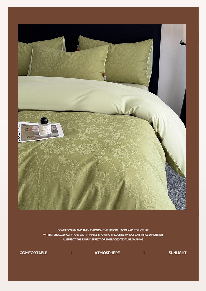 (总)简宜家居(朝初家纺) 2026新款四季40支全棉提花纯棉四件套--彩绘系列,青禾纹-松烟,素缕-留白,彩绘-橘光,粉嫩-梅影,摩卡暗纹,青禾纹-墨黑,青禾纹-奶咖,青枝-梅影