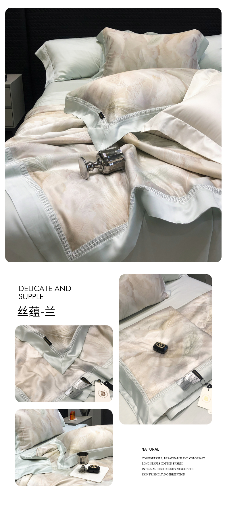 黑白森林2024款 50X50S高支天丝棉数码印花四件套天丝全棉,格伦黄,格伦绿,若瑶灰,羽笛蓝
