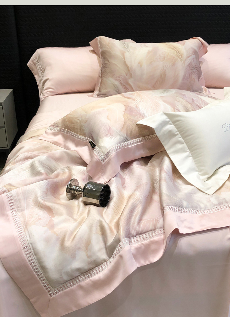 (总)黑白森林2024款 80X80S高支天丝棉四件套镂空蕾丝花边天丝全棉,尚美-晨夕粉,尚美-古象白,尚美-青砂绿,尚美-银雪灰