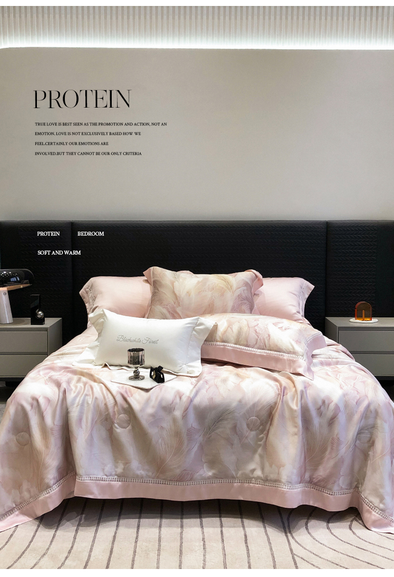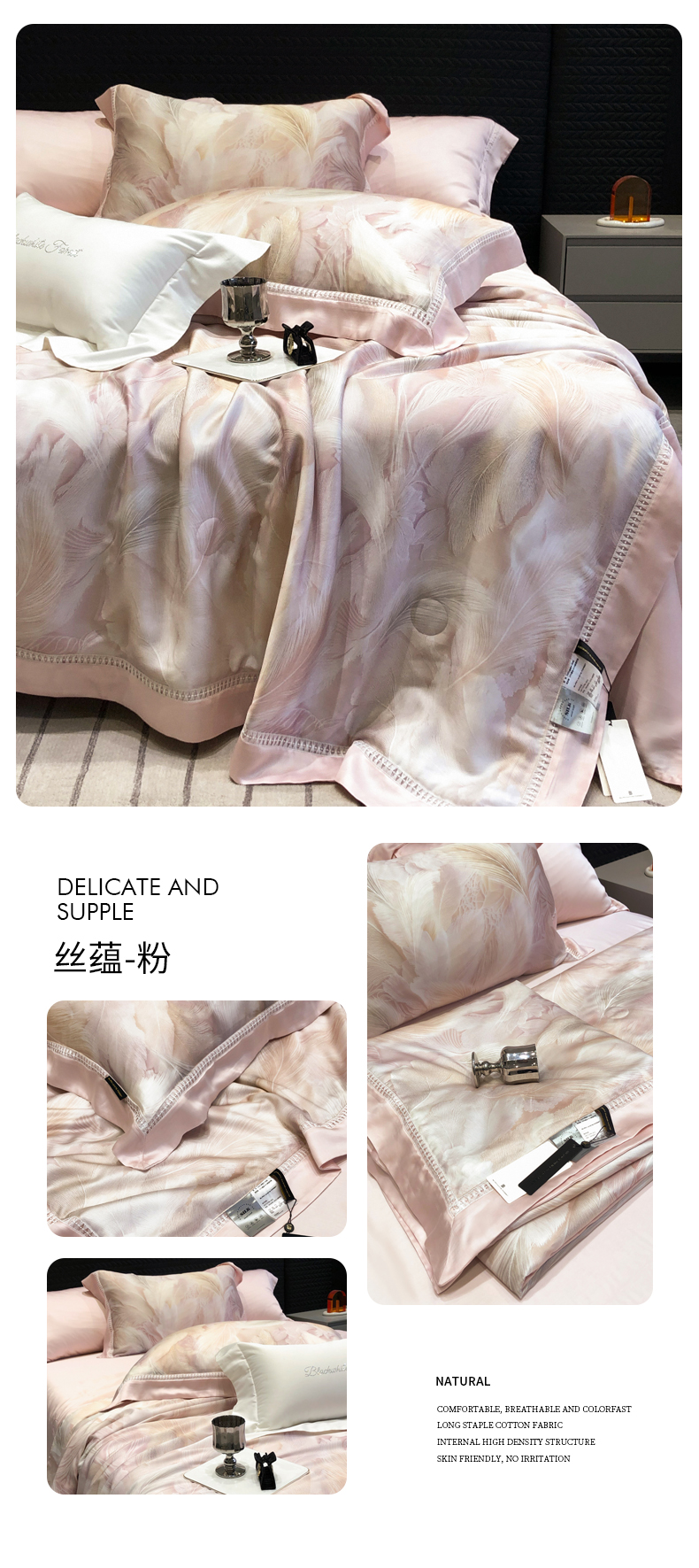 (总)黑白森林 2026新款天丝印花夏被四件套系列,觅羽-粉,觅羽-绿,慕颜,情愫-灰,如愿,薇宁