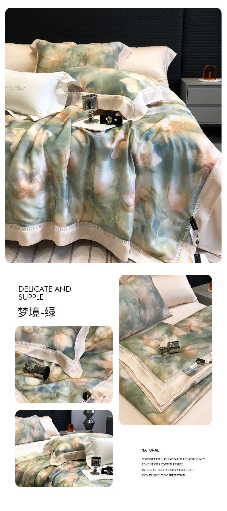 (总)黑白森林 2026新款天丝印花夏被四件套系列,兰奥-灰,兰奥-绿,缦禾-灰,缦禾-紫,梦境-粉,梦境-绿